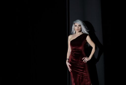Bordo Tek Omuz Yan Yırtmaç Detay Midi Elbise