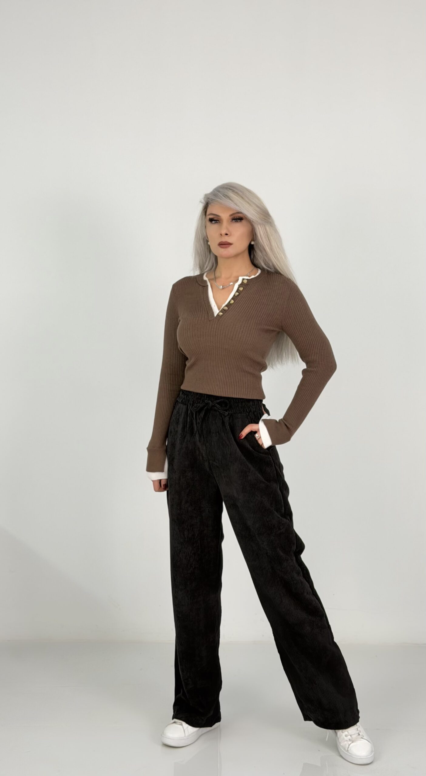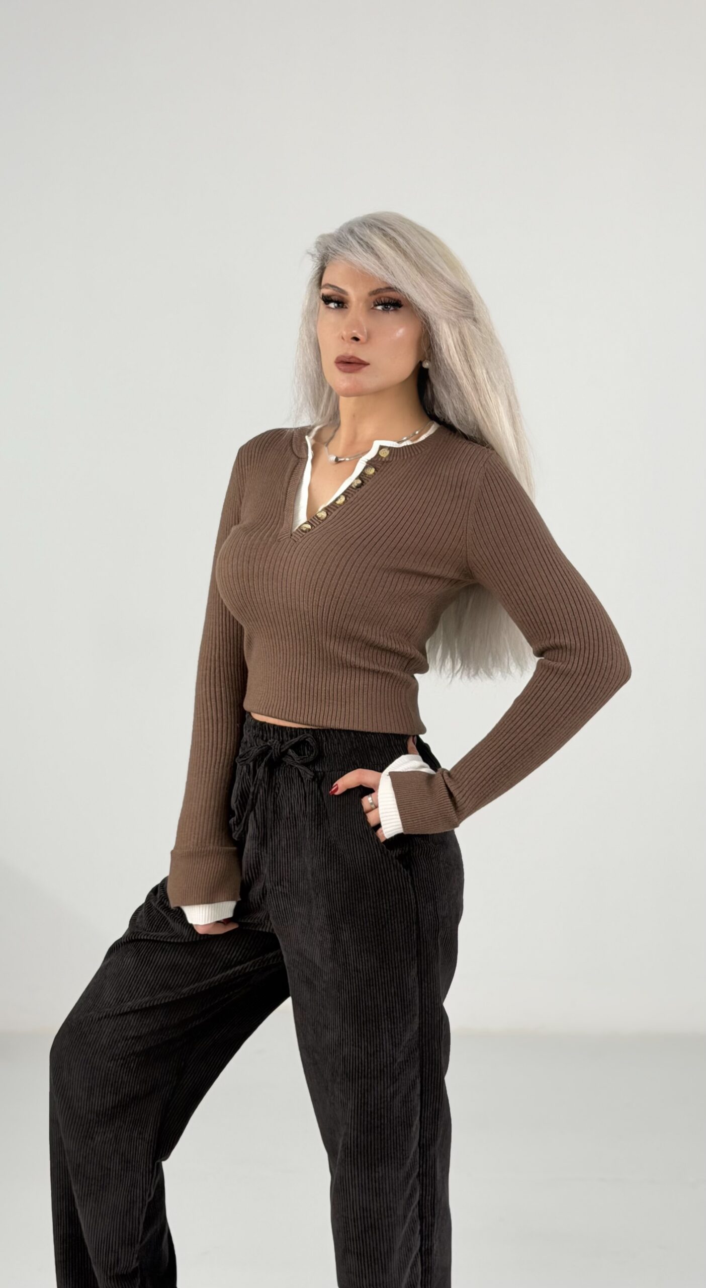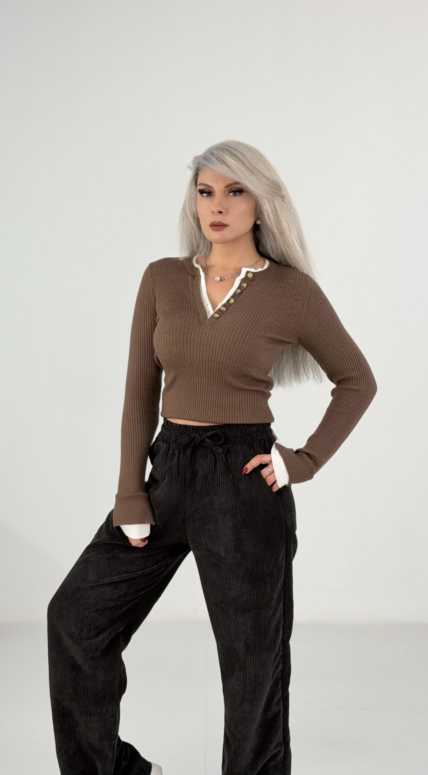 “Kahve Fitilli Düğme Detaylı V Yaka Uzun Kollu Triko Bluz” için yorum yapan ilk kişi siz olun Yanıtı iptal et