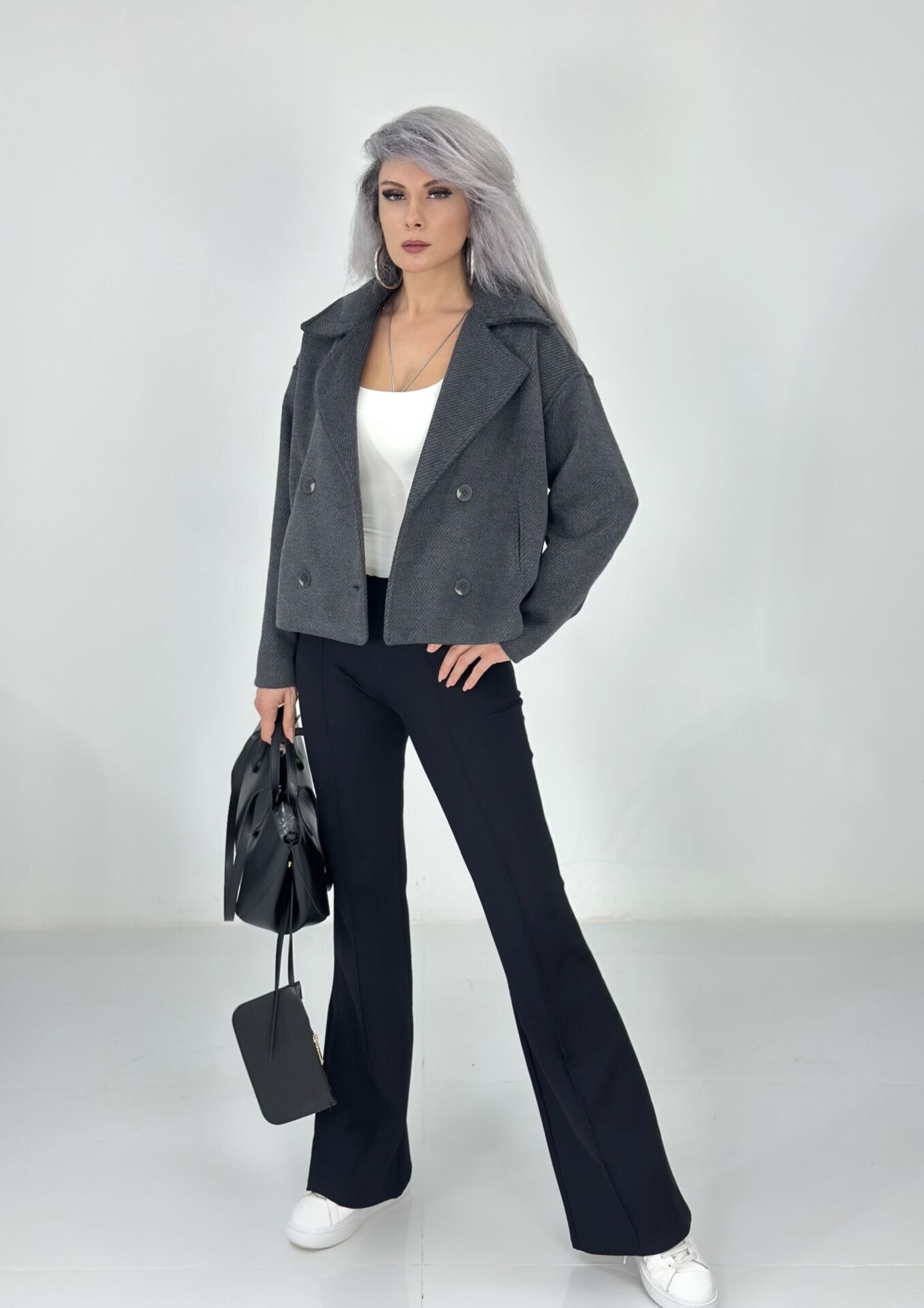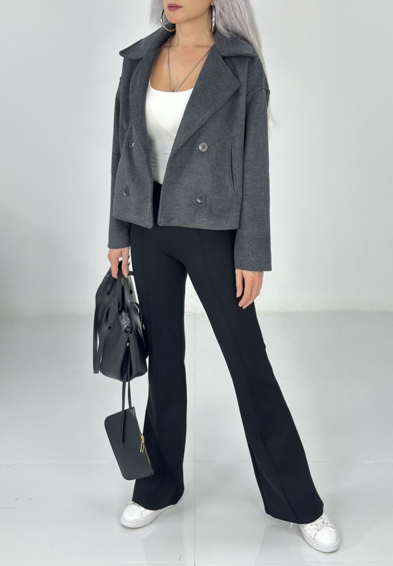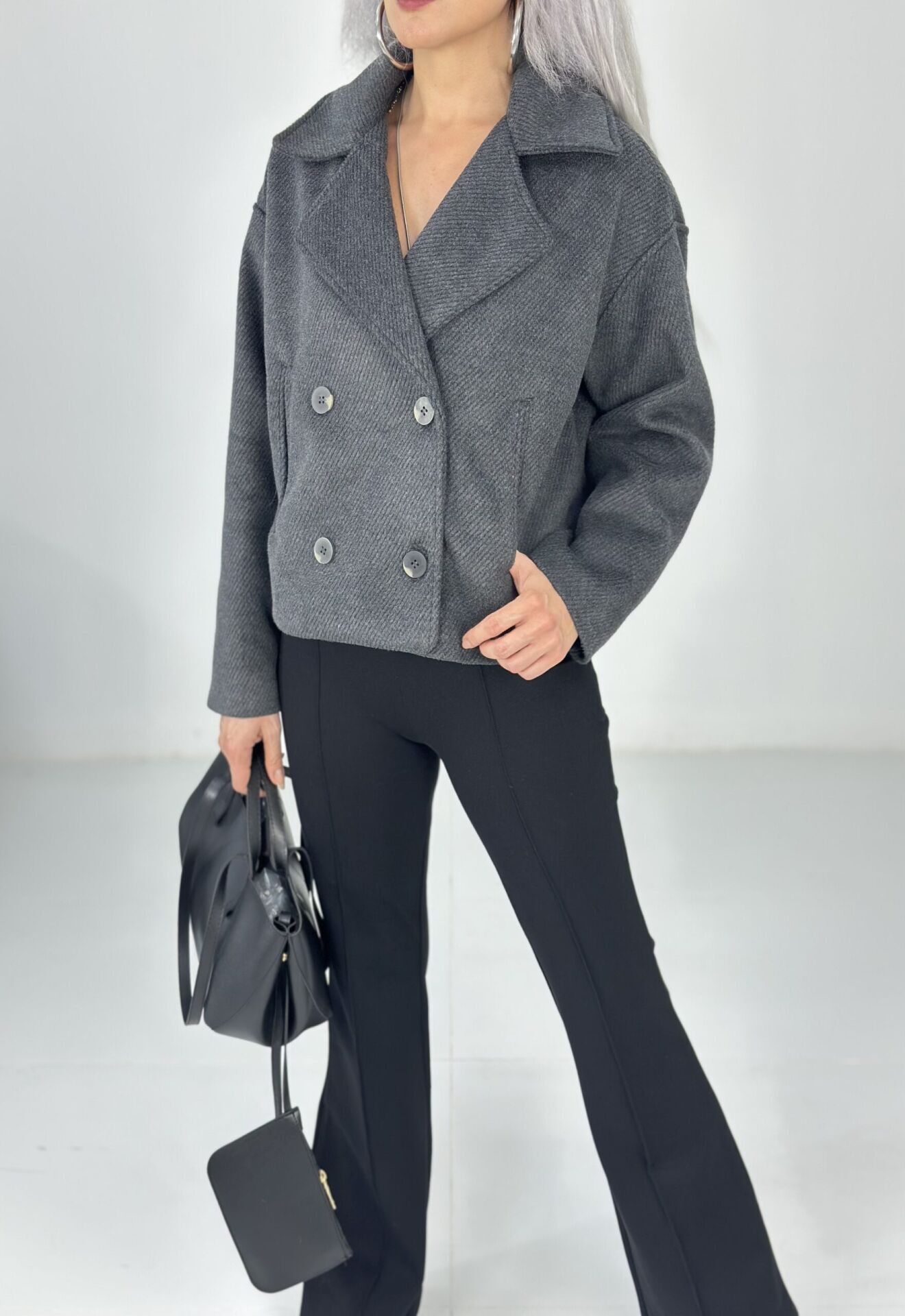 Antrasit Düğmeli Yumuşak Kaşe Ceket Mont