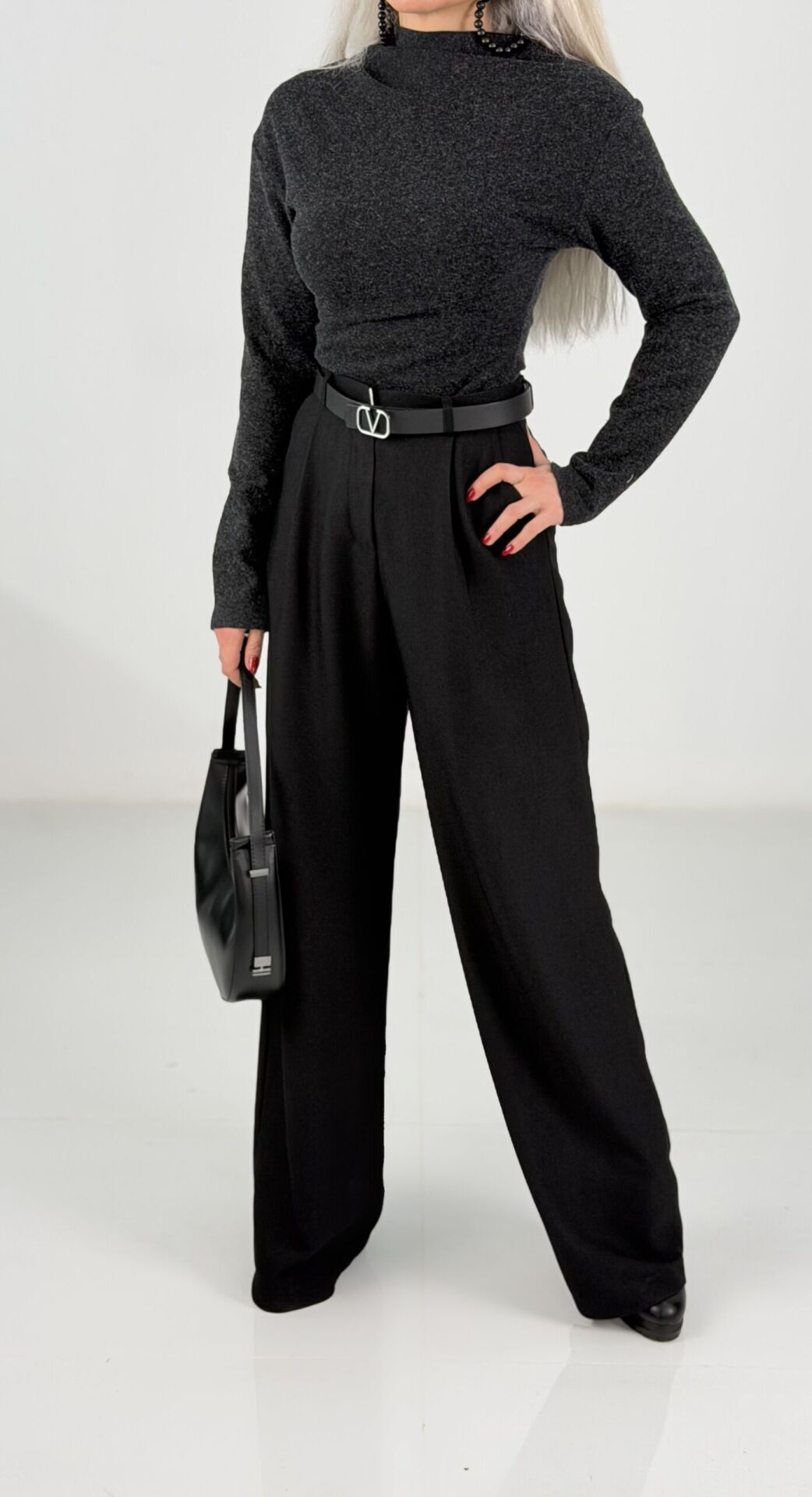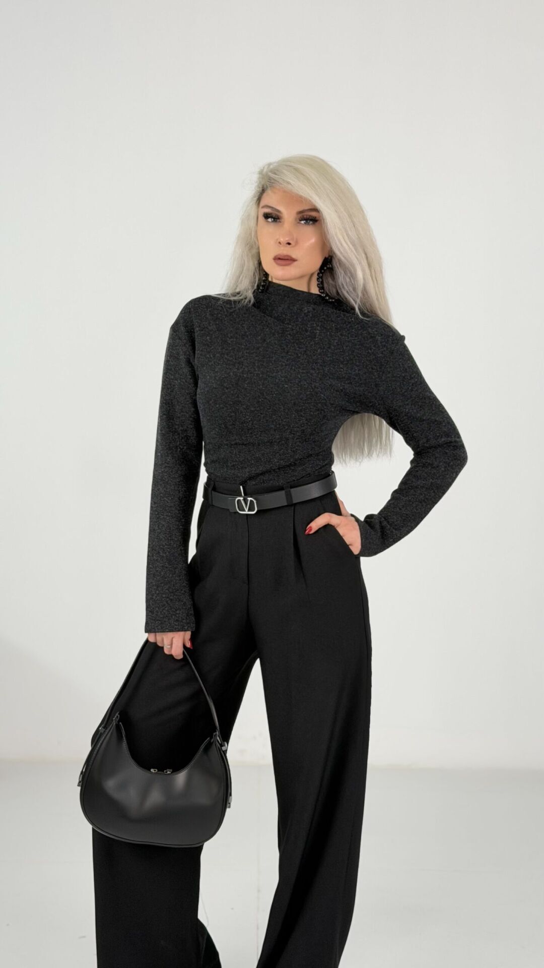 Antrasit Yarım Balıkçı Çelik Kumaş Bluz Kazak