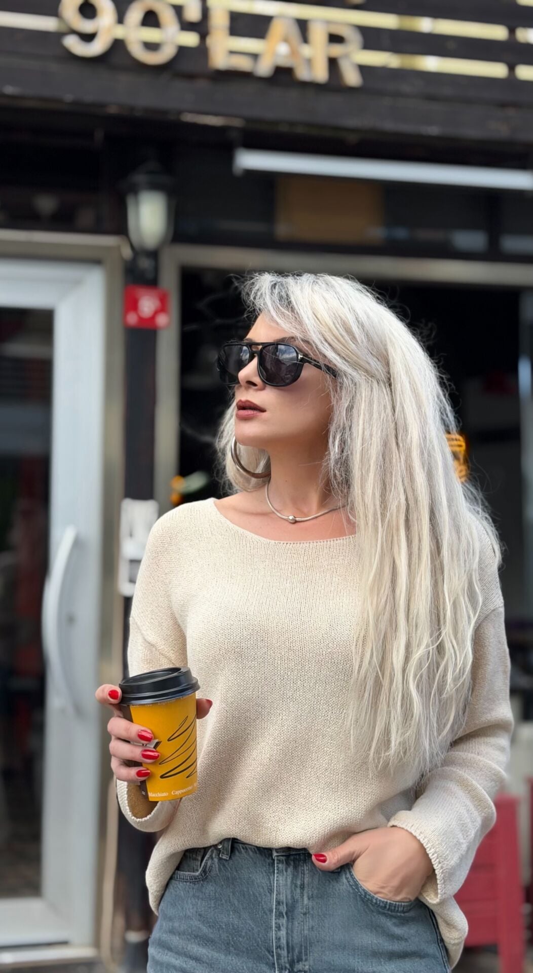 Bej V Yaka Uzun Kollu Triko Bluz