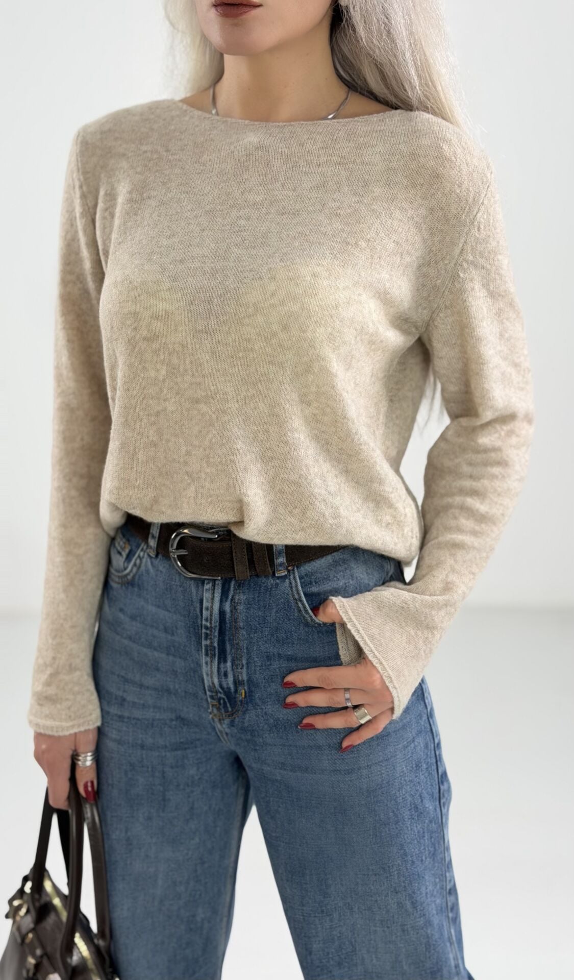 Bej Yumoş İnce Triko Bluz
