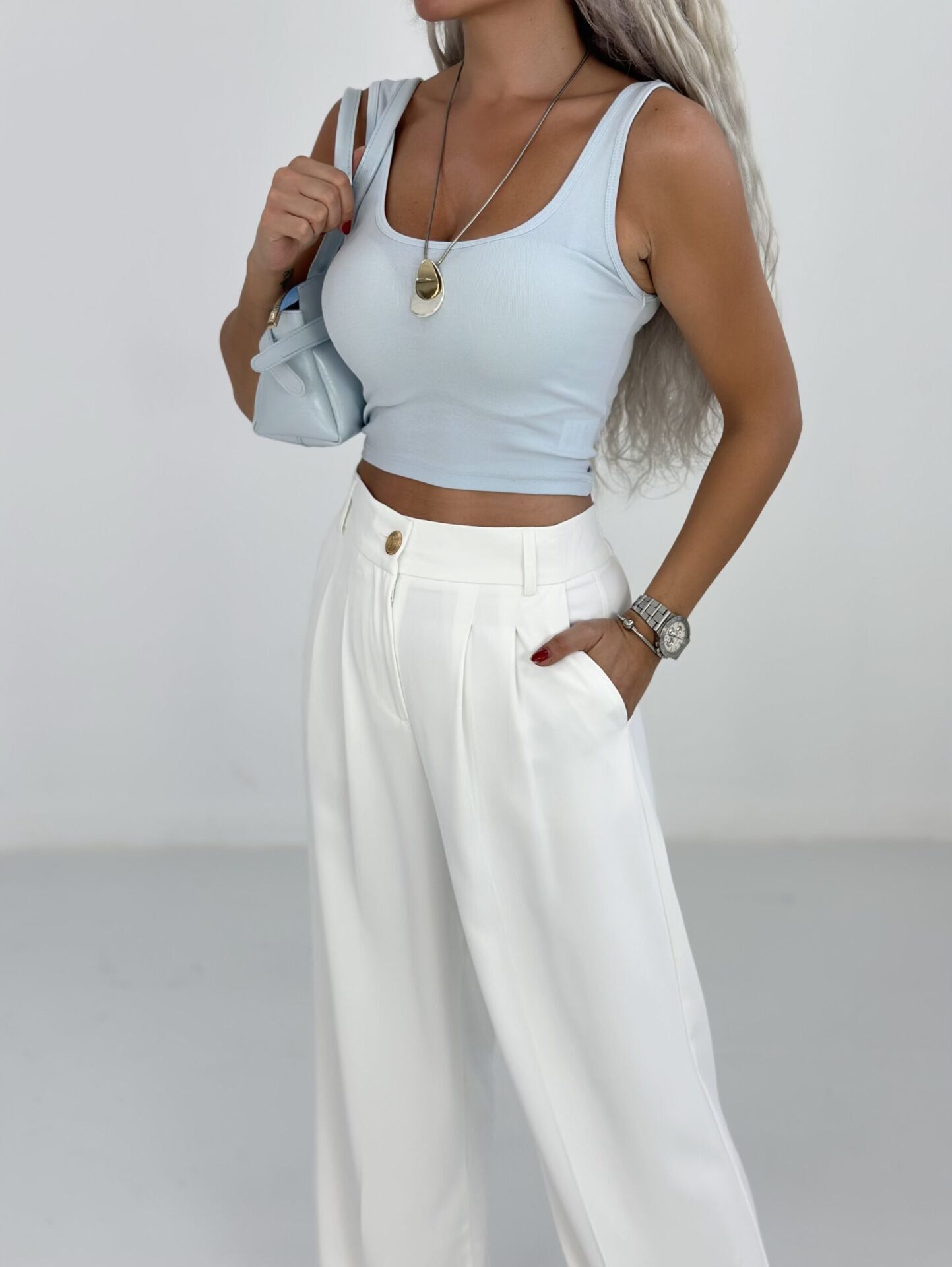 Beyaz Belden Lastikli Bol Kumaş Pantolon SMALL