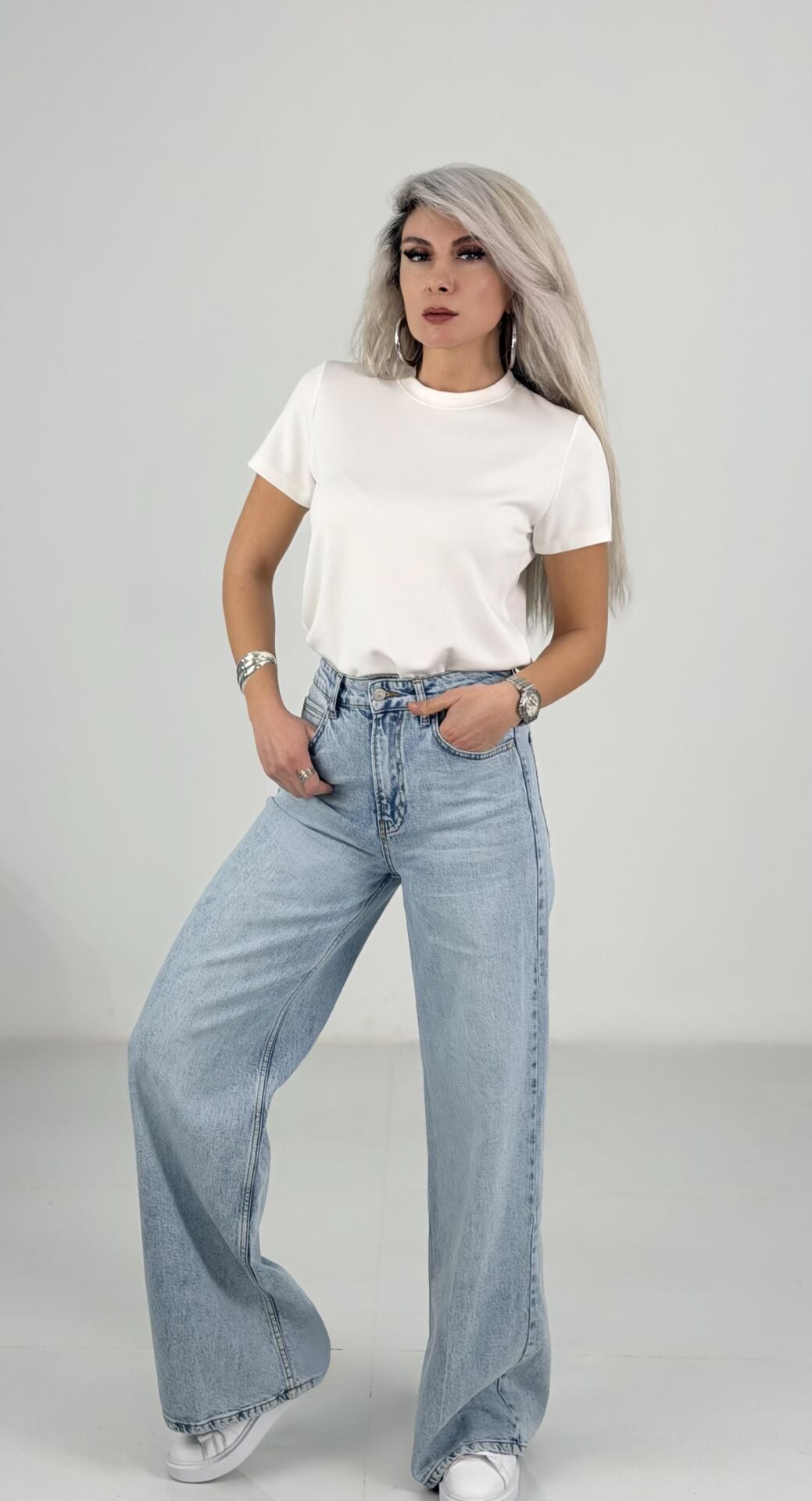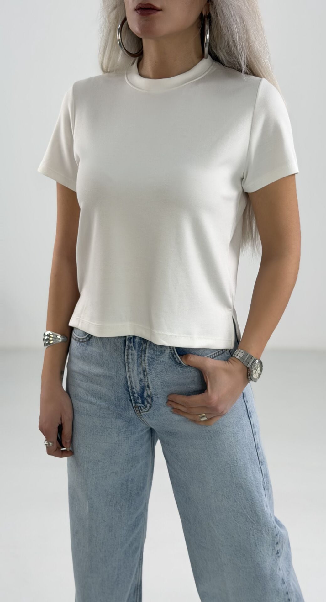 Beyaz Bisiklet Yaka Pamuklu Penye Tshirt