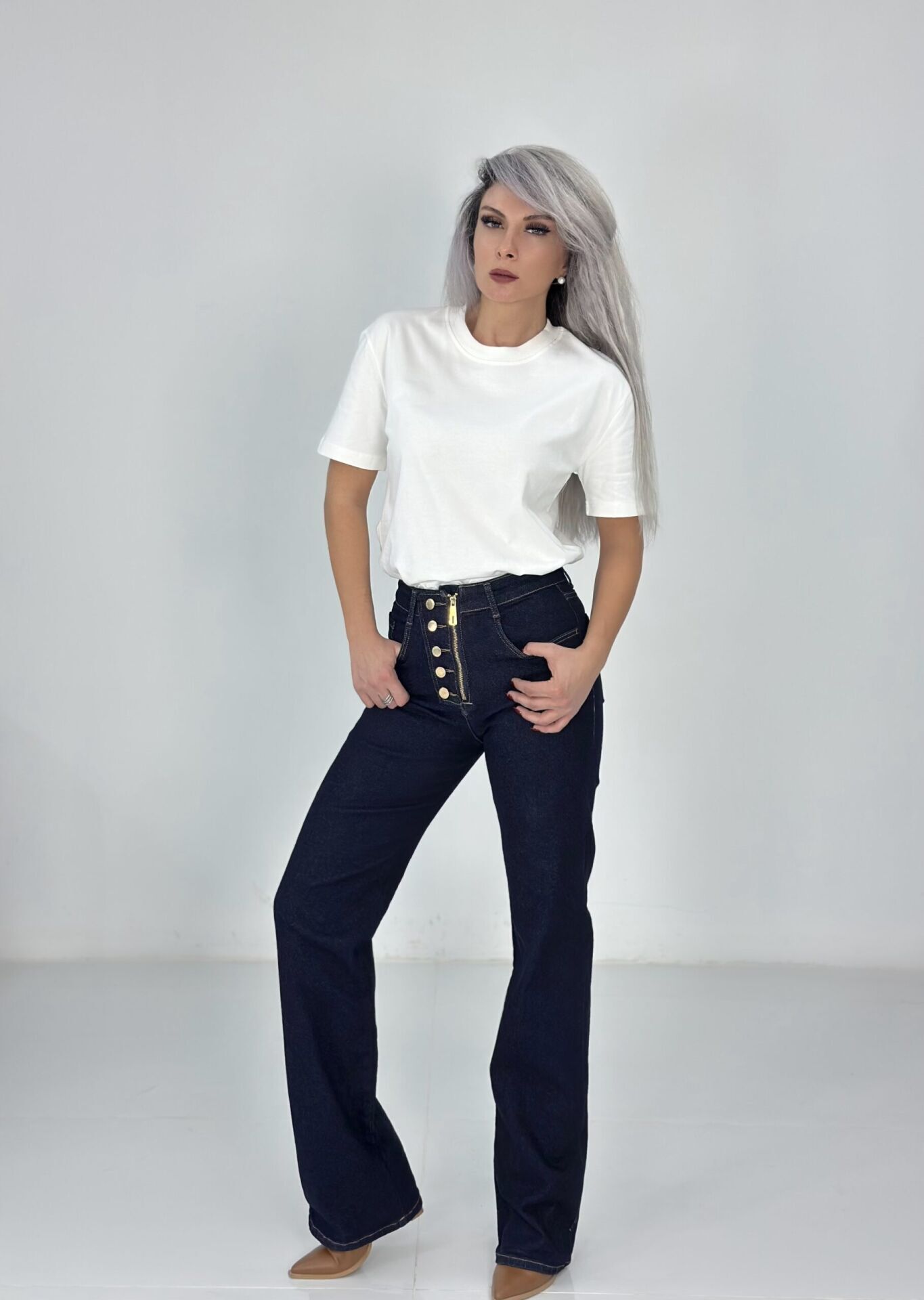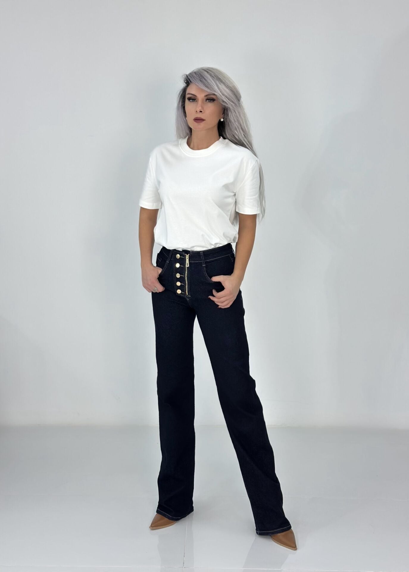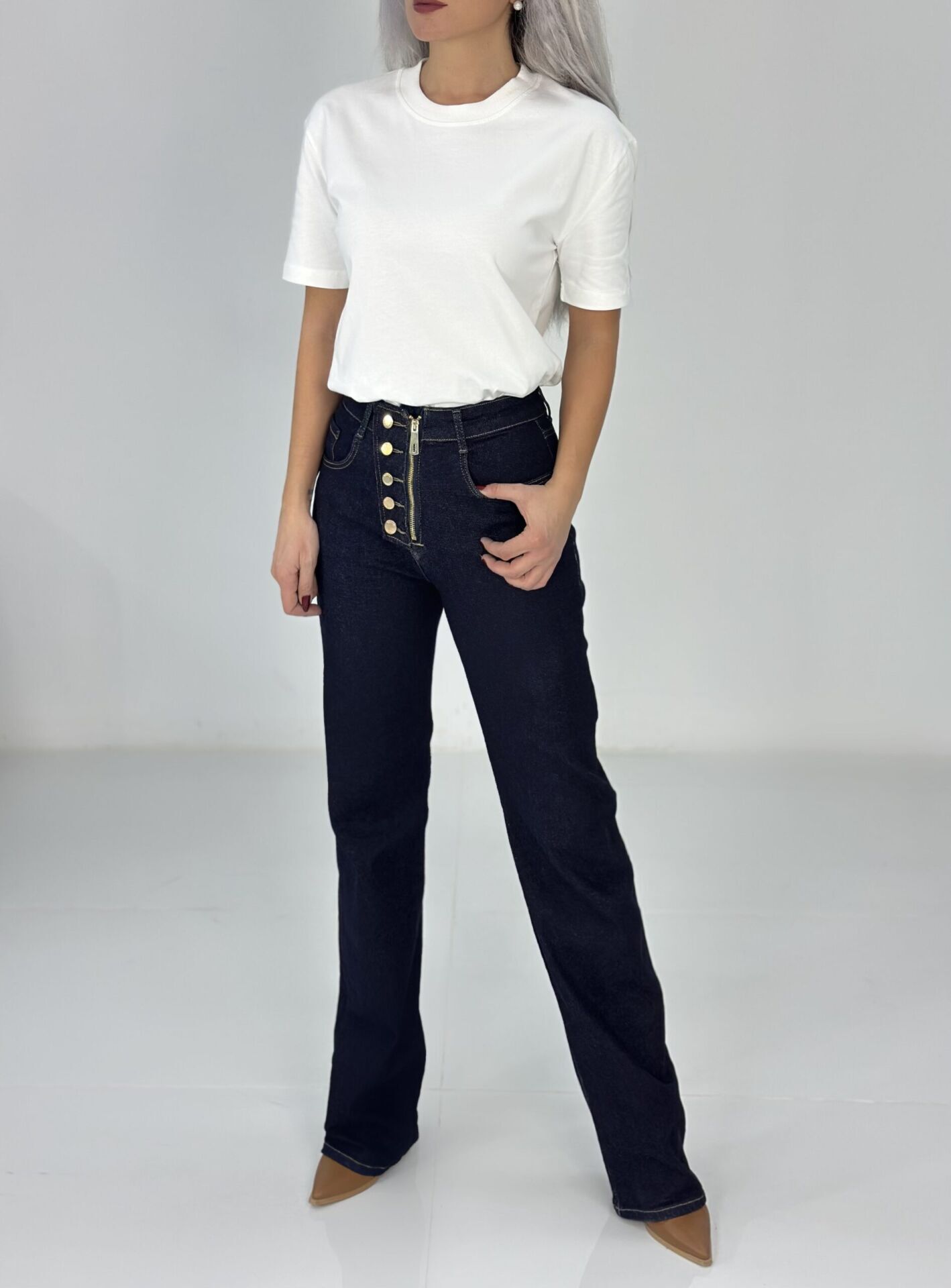 Beyaz Çift Kat Bisiklet Yaka Basic Tshirt
