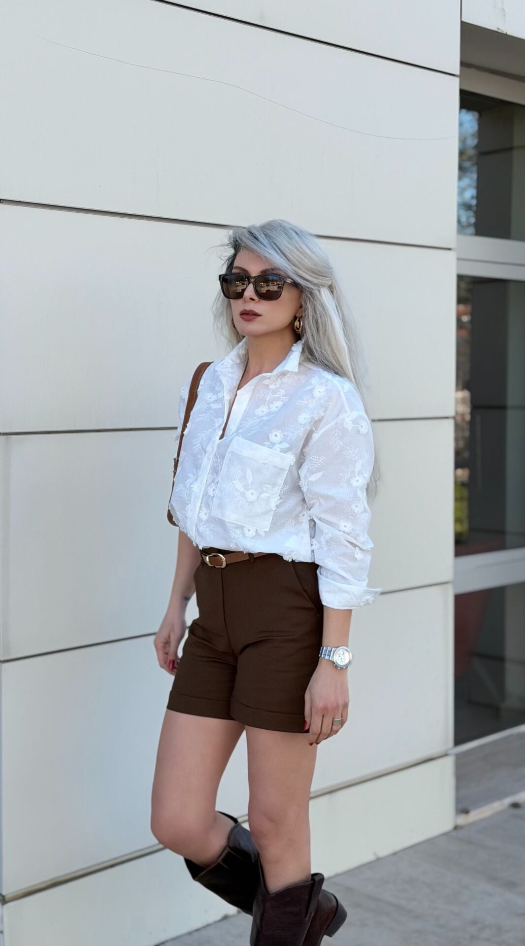 Beyaz Güpür Çicek Detaylı Gömlek
