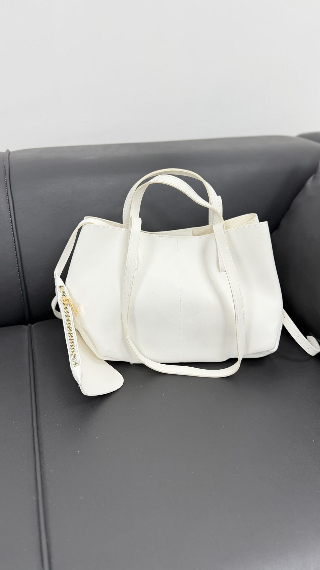 Beyaz Kadın Minimal Omuz & El Çantası – Cüzdan Aksesuarlı
