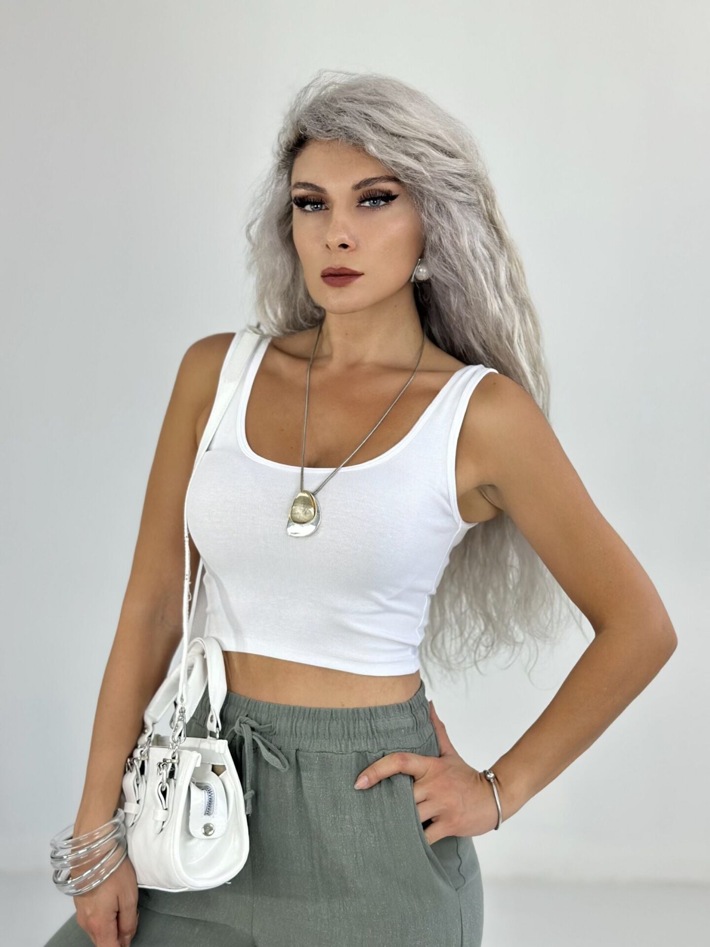 Beyaz Kalın Askılı Penye Crop Atlet SMALL