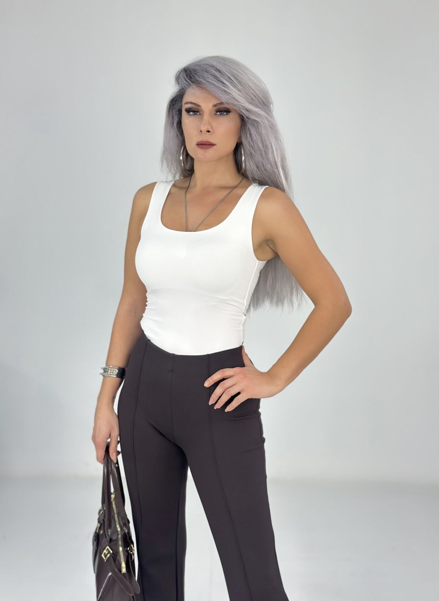 Beyaz Kare Yaka Çift Kat Atlet
