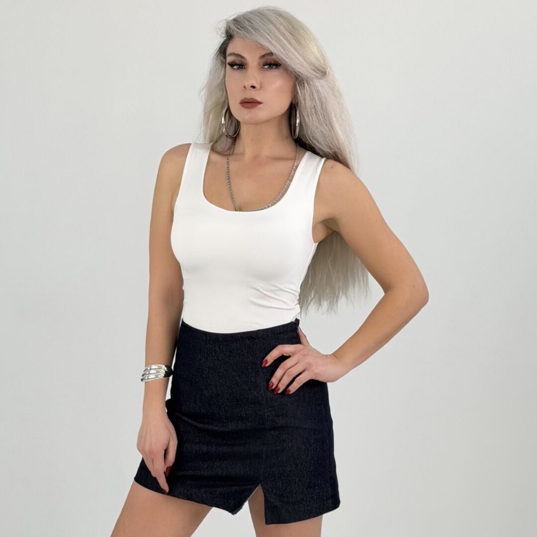 Beyaz Kare Yaka Kolsuz Atlet Bluz