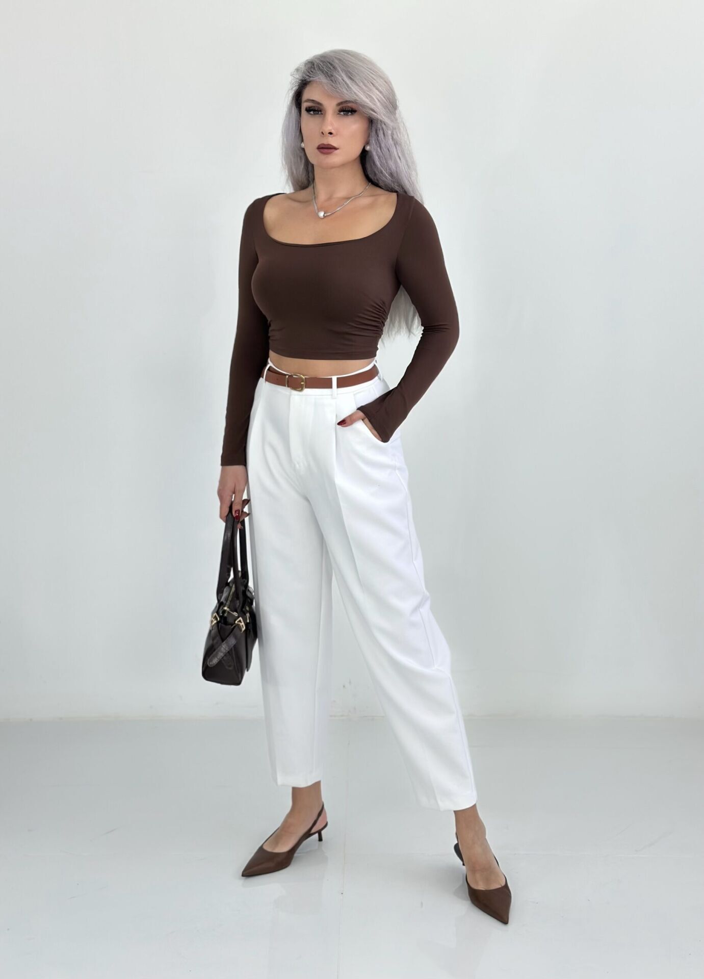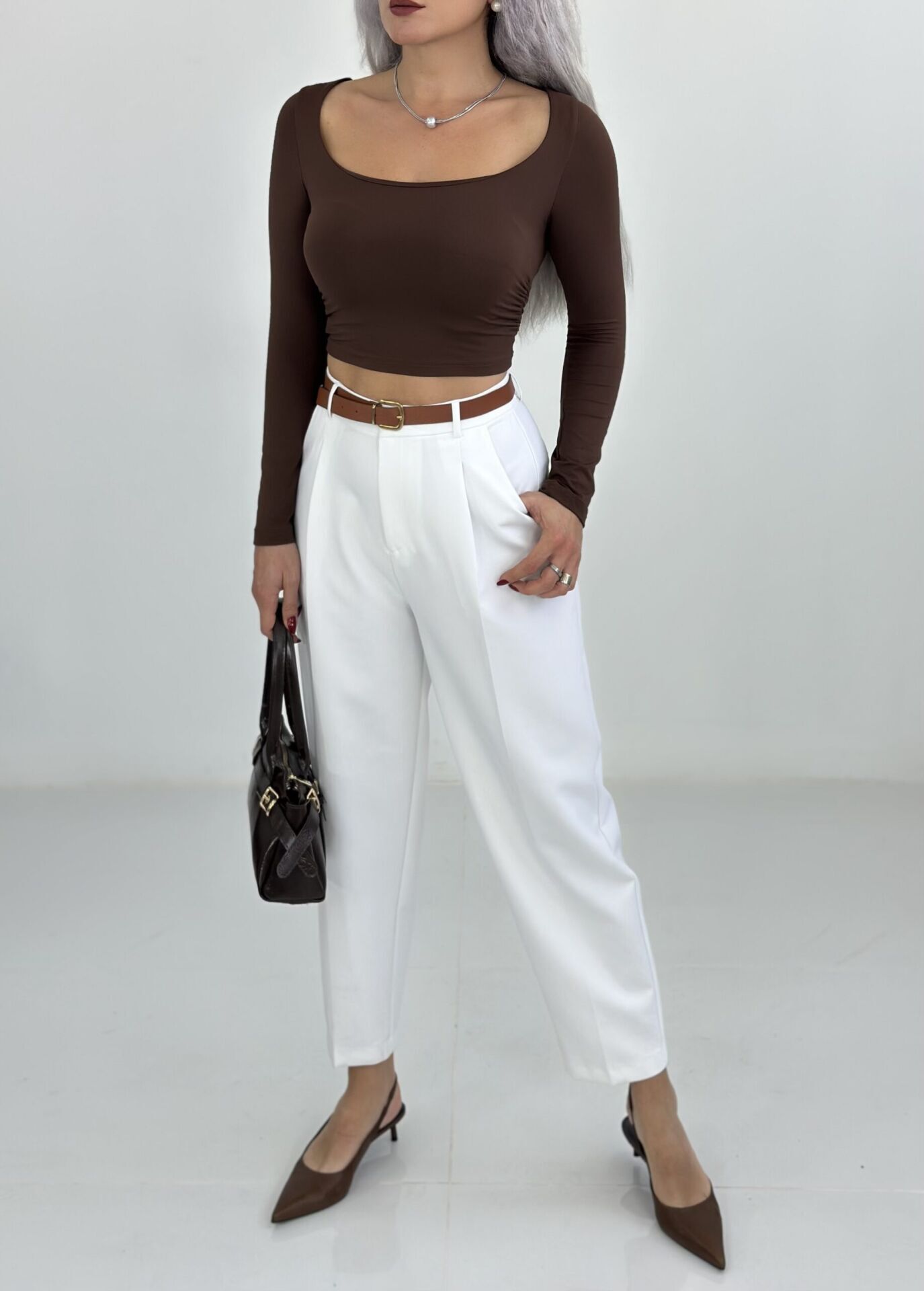 Beyaz Kemerli Havuç Pantolon MEDİUM
