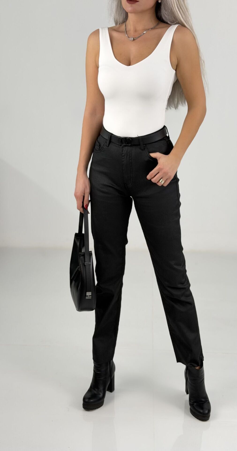Beyaz Ön Arka V Yaka Bodysuit MEDİUM
