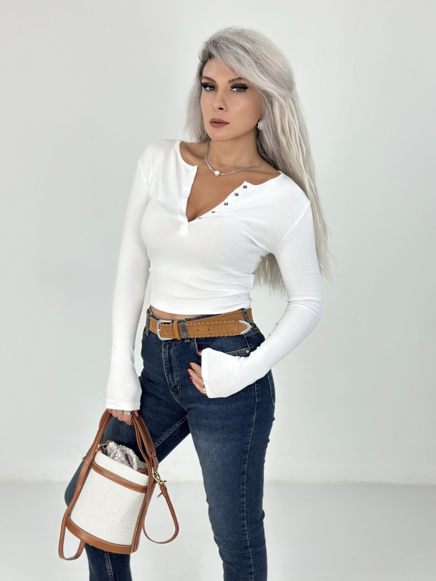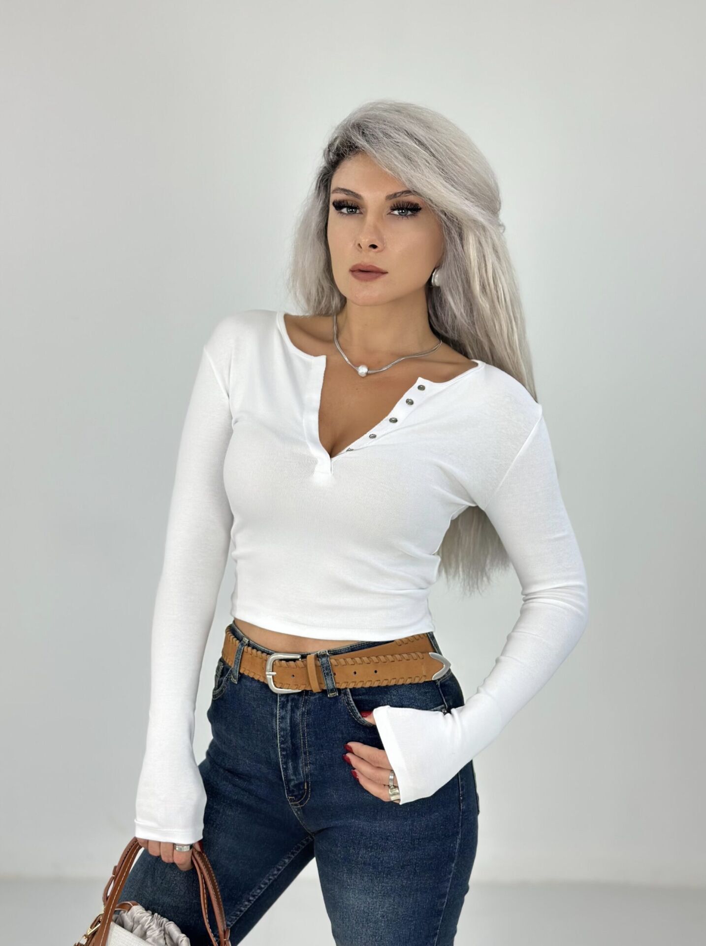 Beyaz Önden Çıtçıtlı Uzun Kol Body LARGE