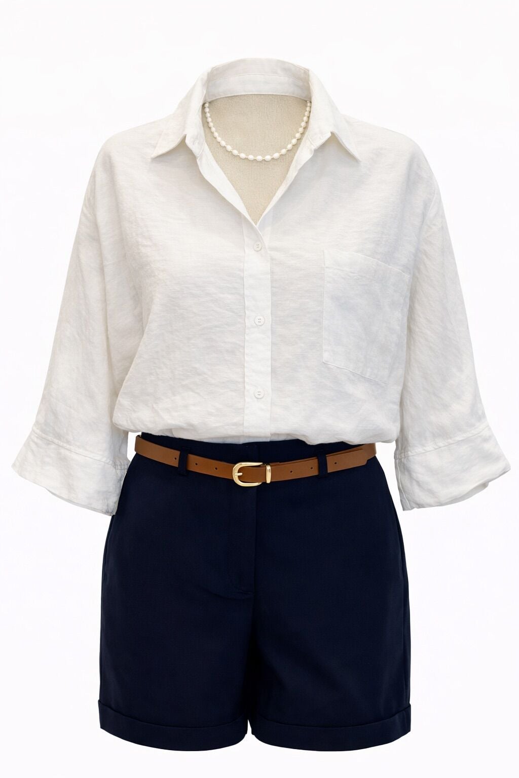 Beyaz Pamuk Vizkon Yarım Kol Gömlek Bluz