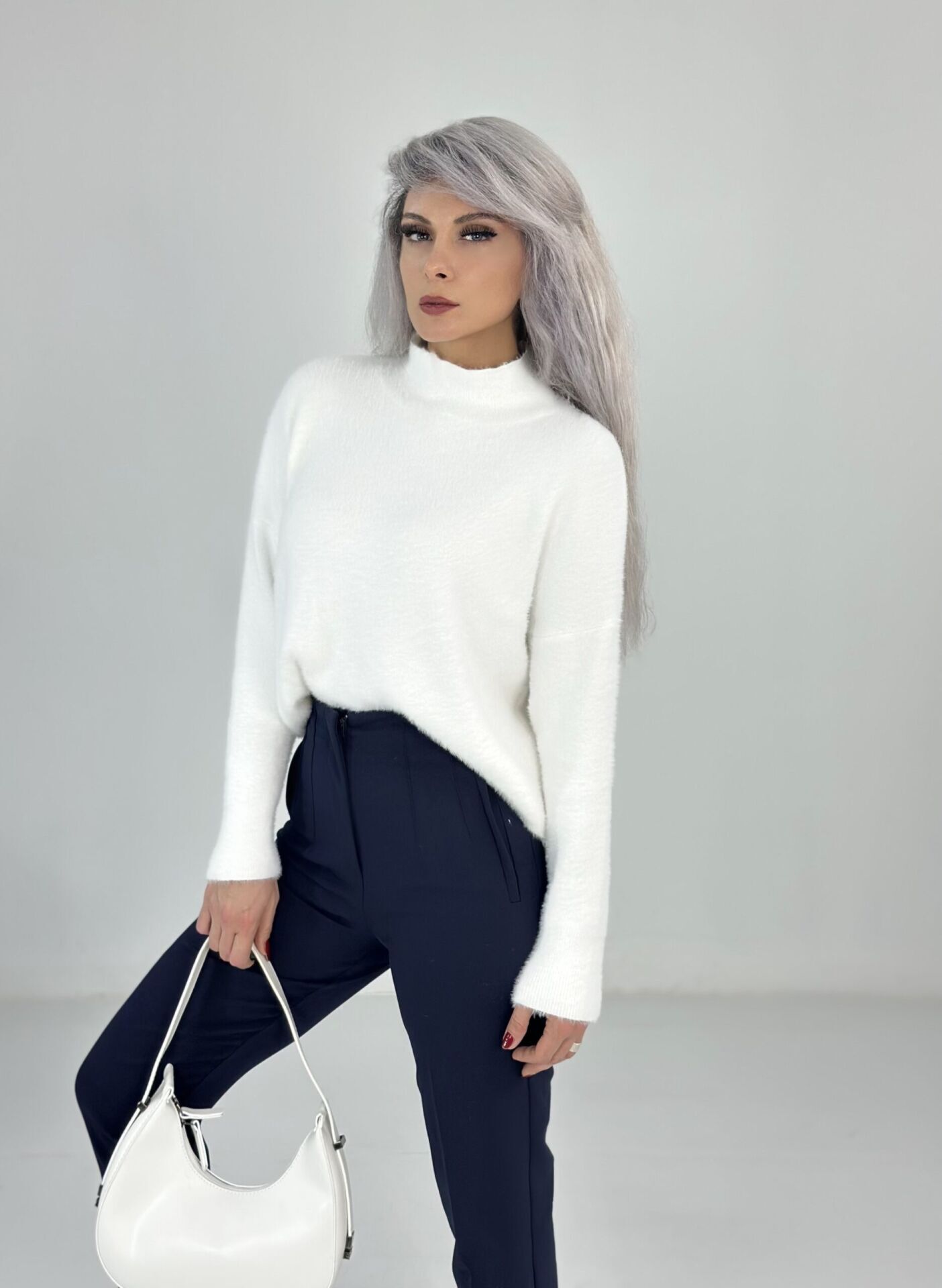 Beyaz Yarım Balıkçı Yumoş Kazak