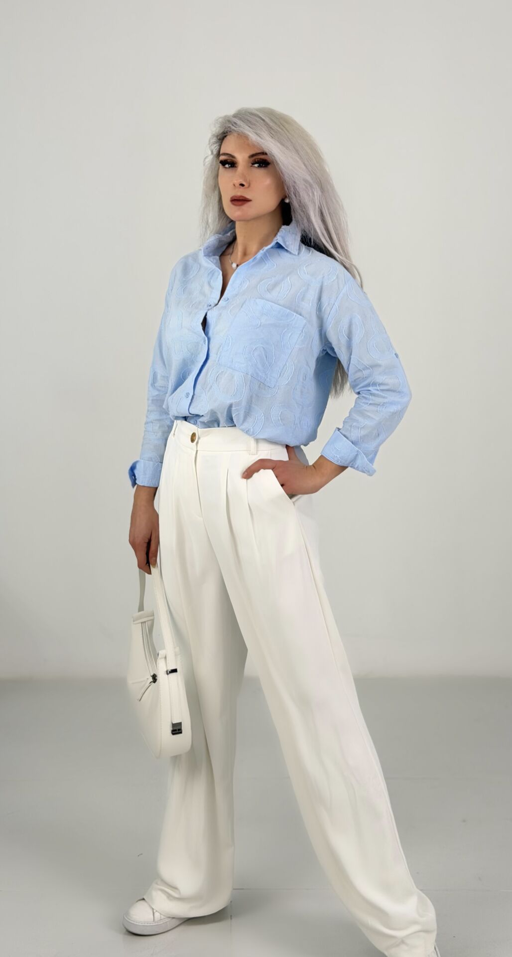 Bel lastikli bol paça kesimiyle rahat,modern ve zarif bir görünüm sunan pantolon, hafif kumaşı sayesinde yaz aylarında konforlu kullanım sağlar. Şık gömlek ve basic üstlerle kolayca kombinlenebilir.