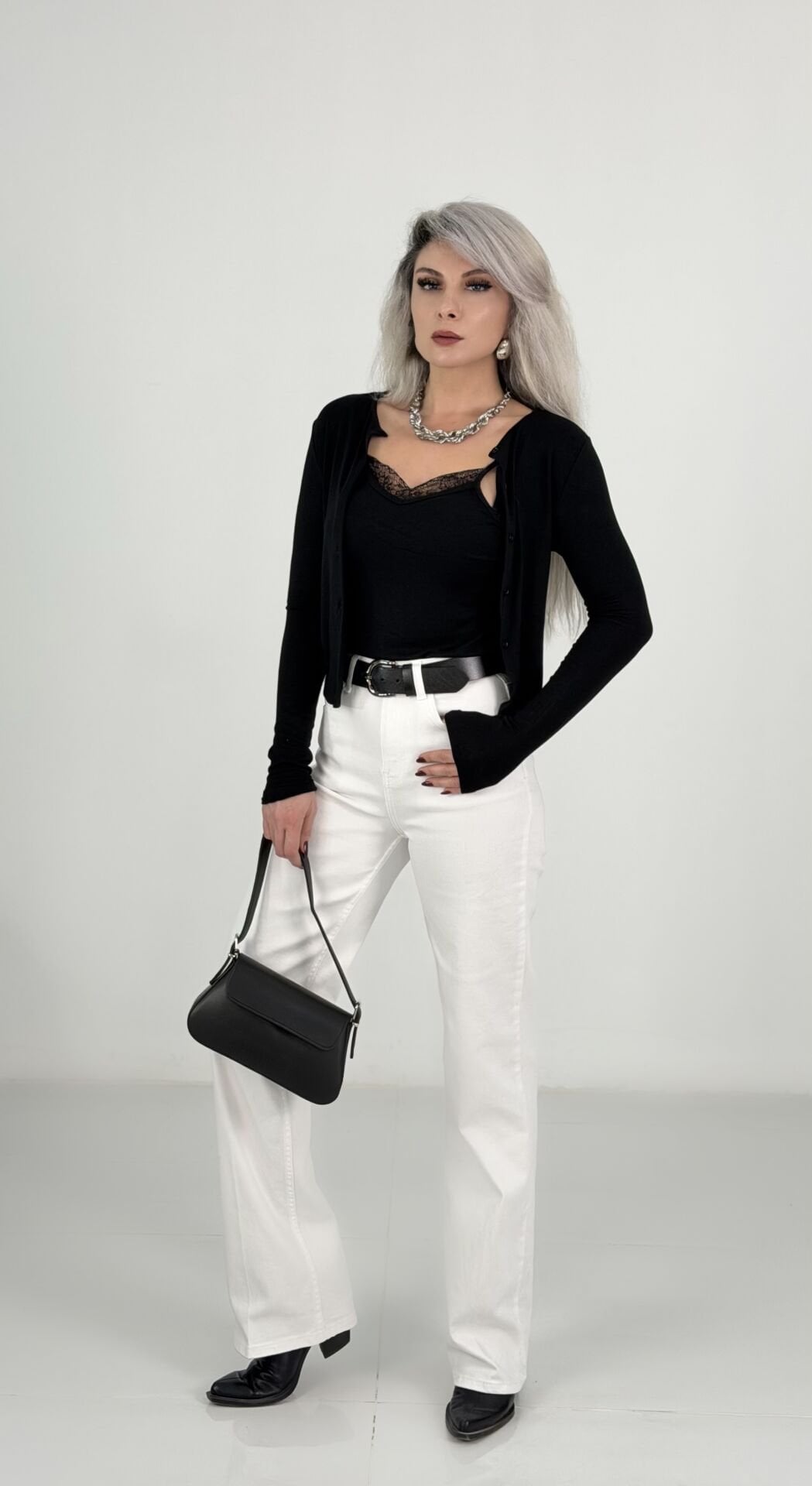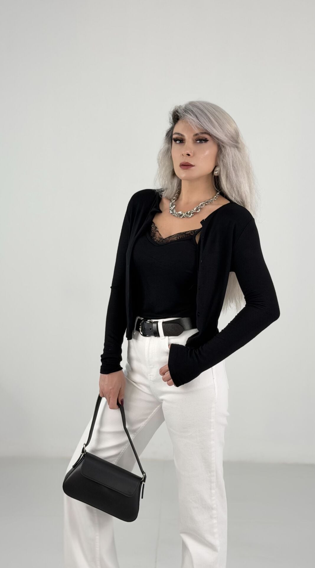 Minimal siyah parçalarla kombinlendiğinde güçlü ve sofistike bir görünüm yaratır.