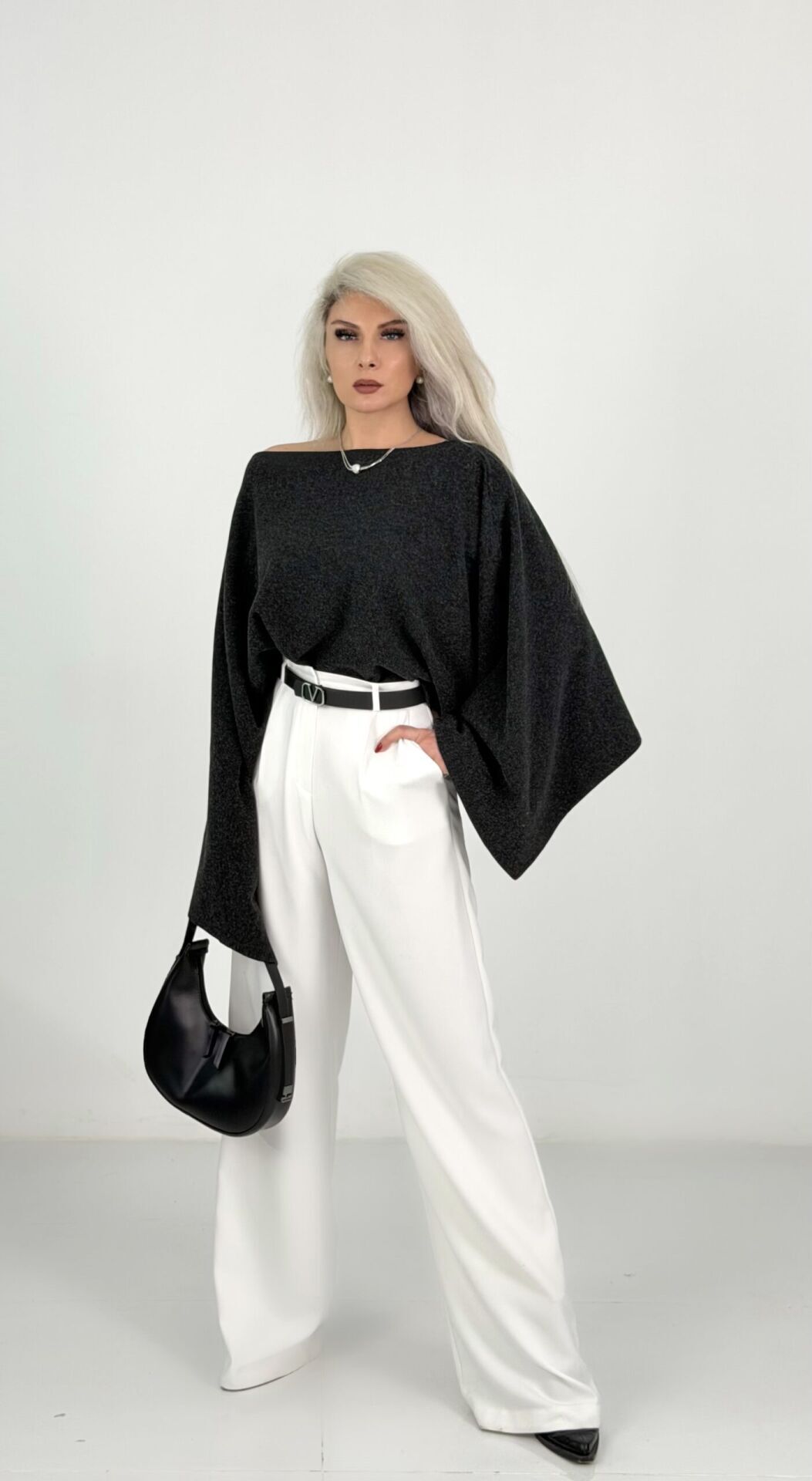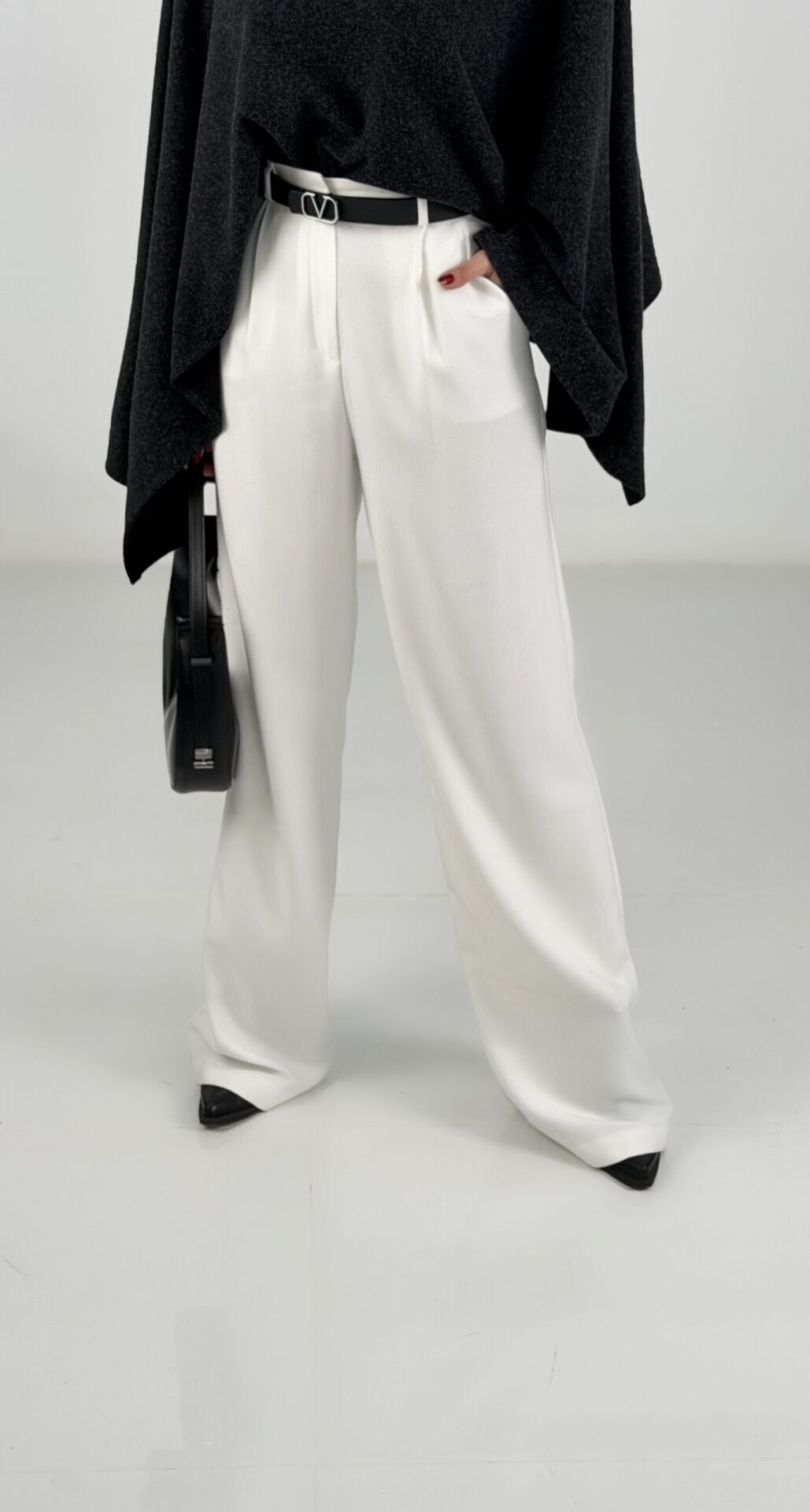 Beyaz Yüksek Bel Yumoş Kaşe Palazzo Pantolon