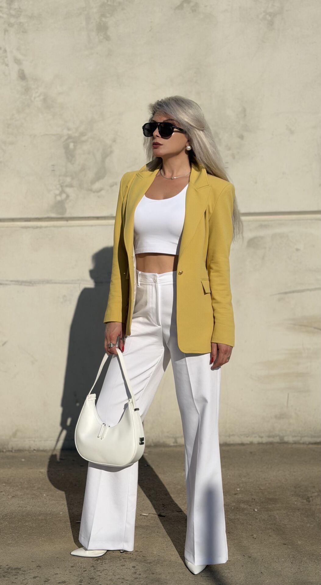 Beyaz Yüksek Bel Yumoş Kaşe Palazzo Pantolon