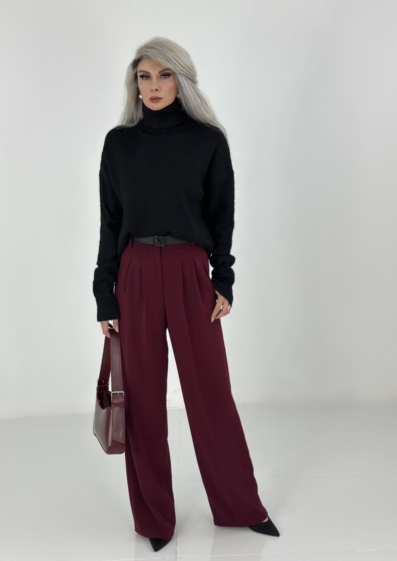 Bordo Bel Lastikli Bol Paça Pantolon SMALL