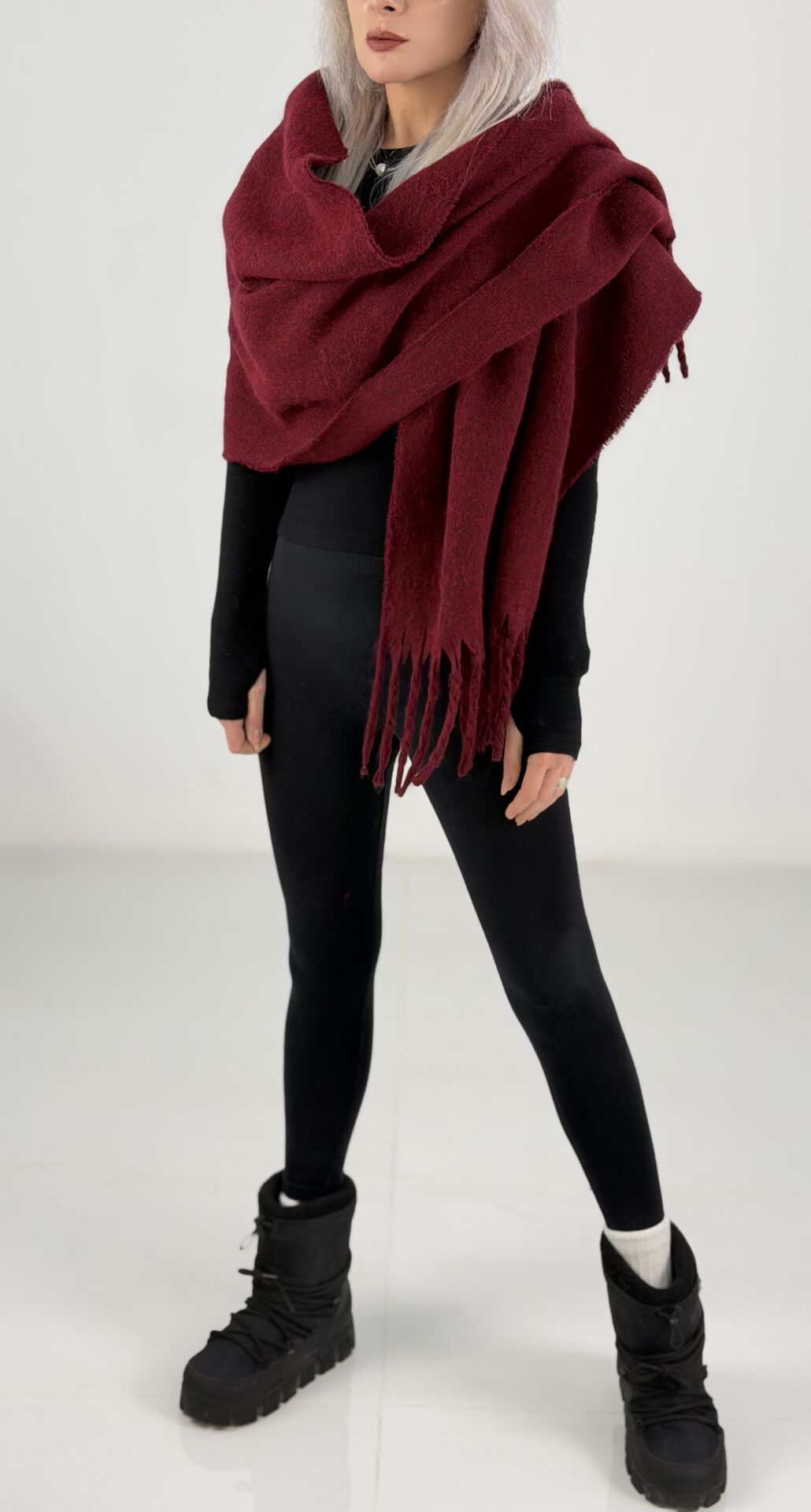 Bordo Püsküllü Kalın Dokulu Kışlık Yumoş Şal