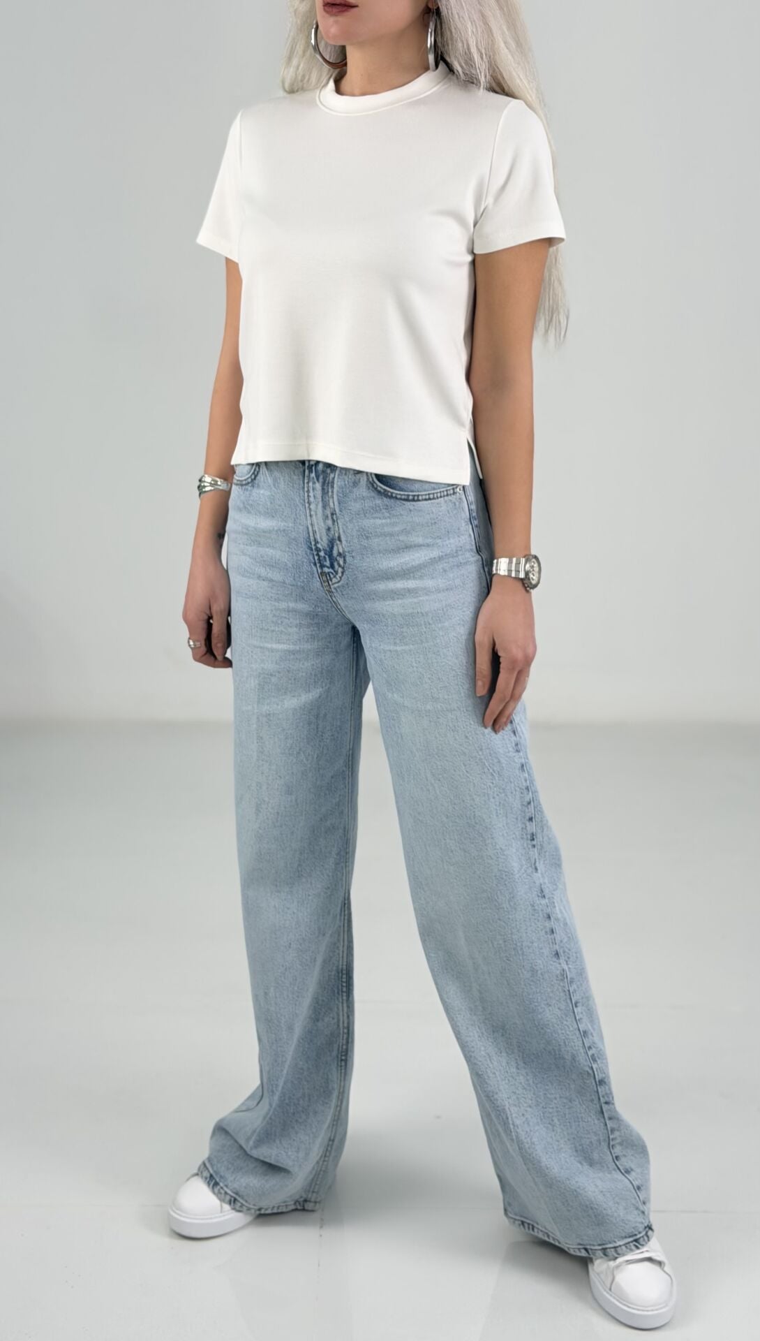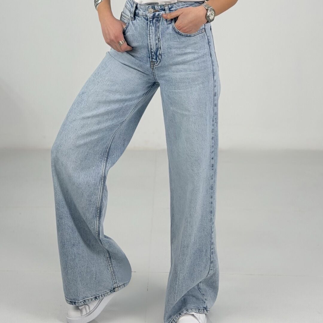 Buz Mavi Yüksek Bel Bol Paça Palazzo Jean