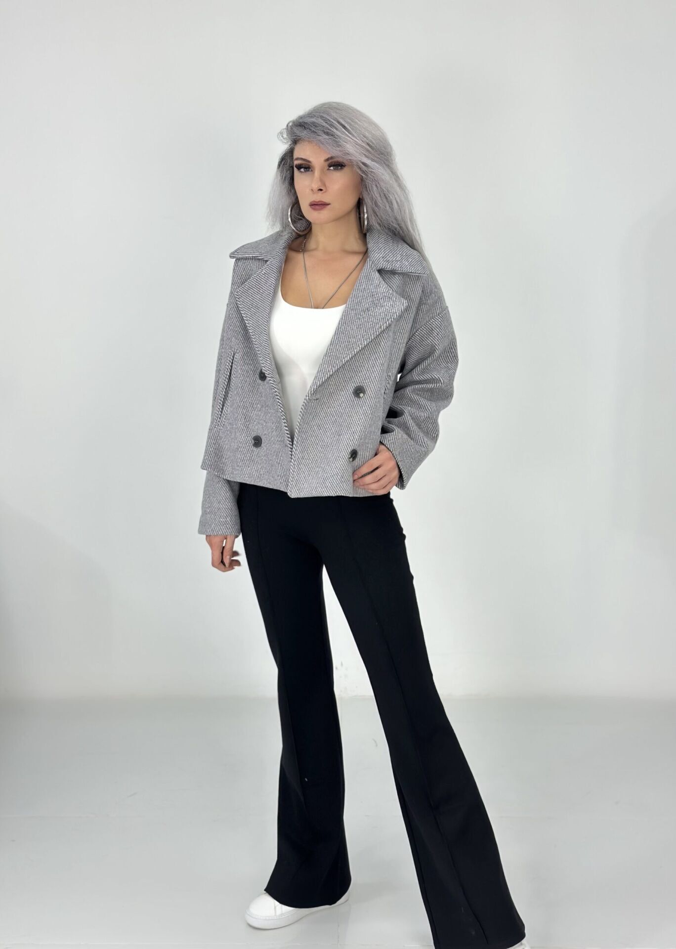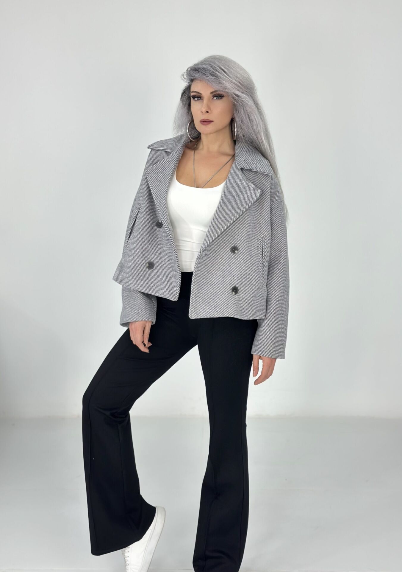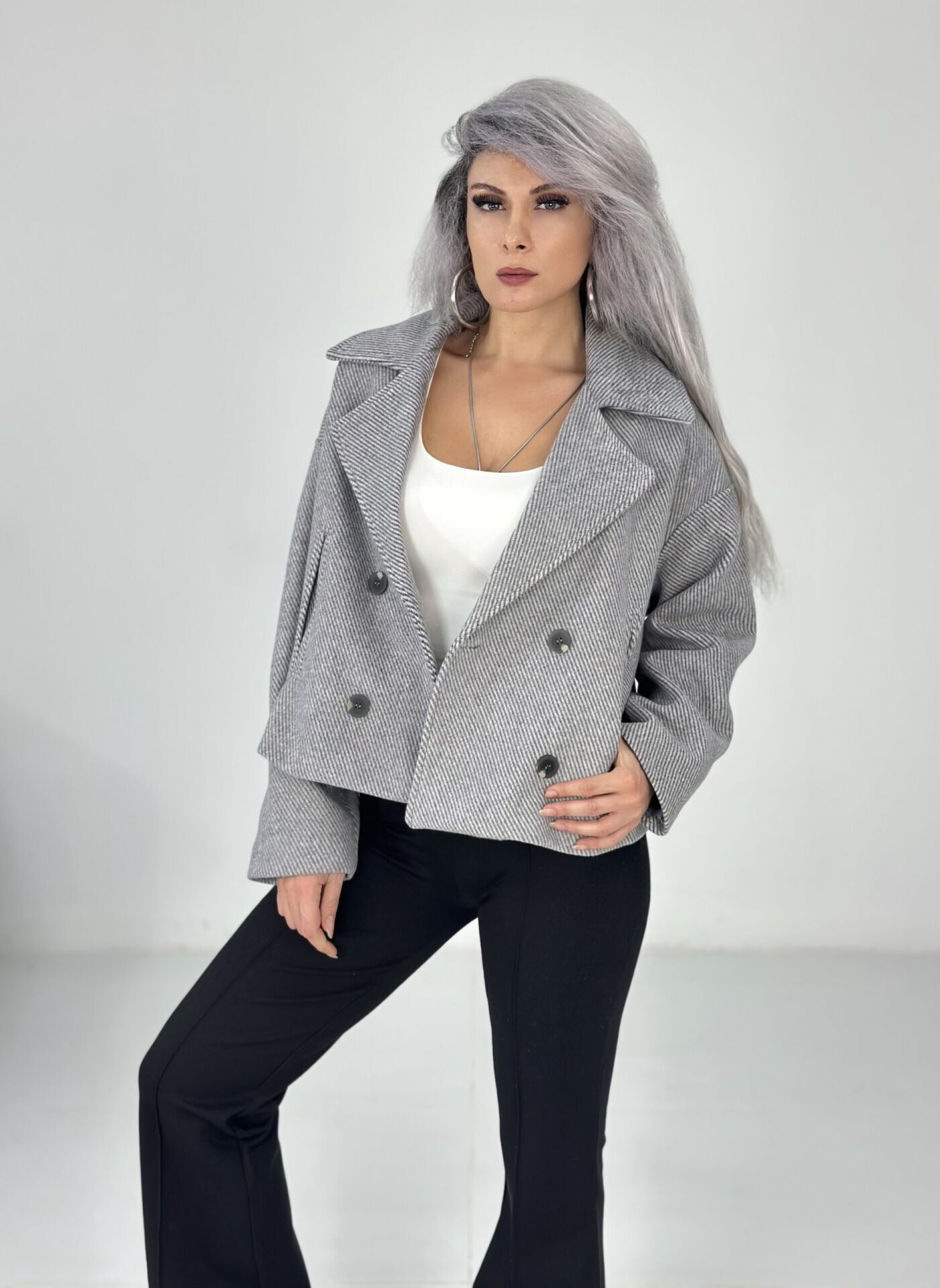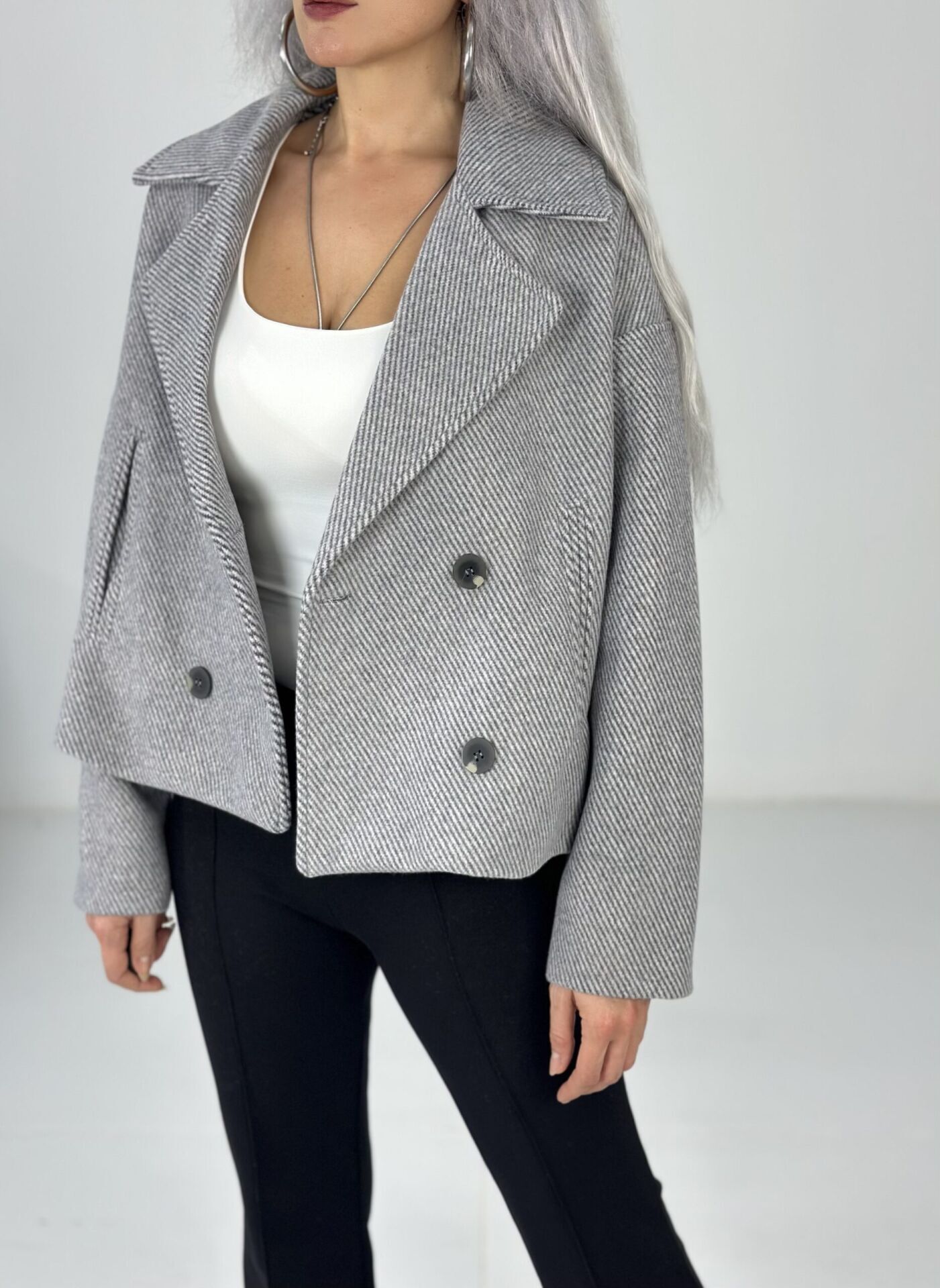 Gri Düğmeli Yumuşak Kaşe Ceket Mont