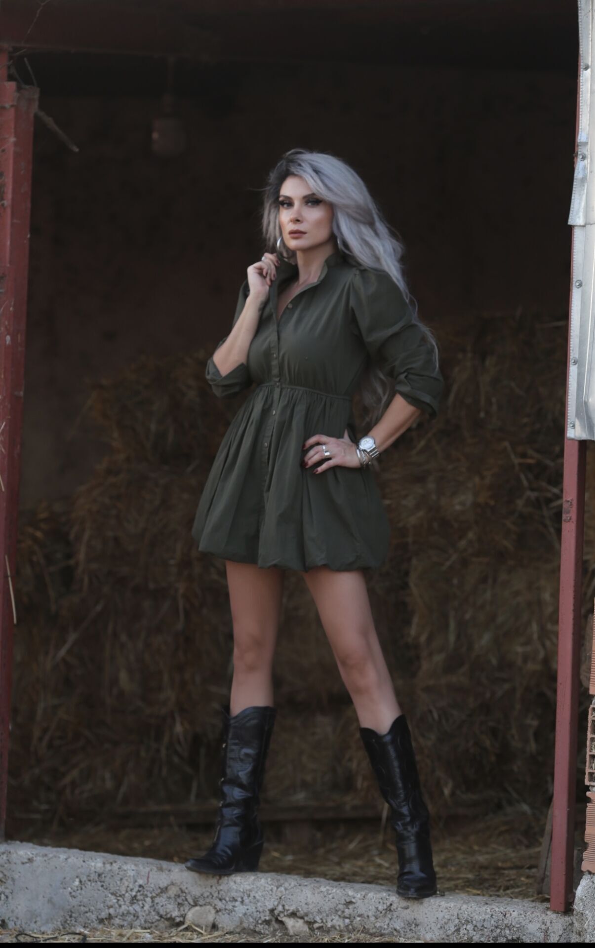 Haki Hakim Yaka Gömlek Elbise