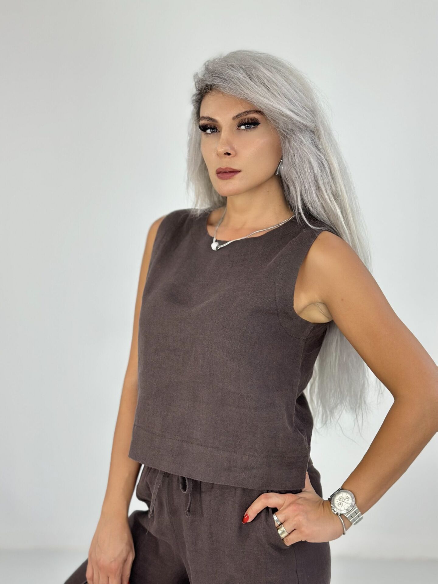 Kahve Kolsuz Keten Takım SMALL