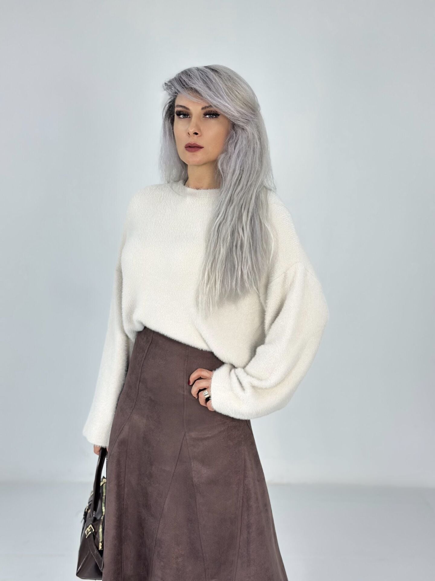 Kahve Süet Midi Etek