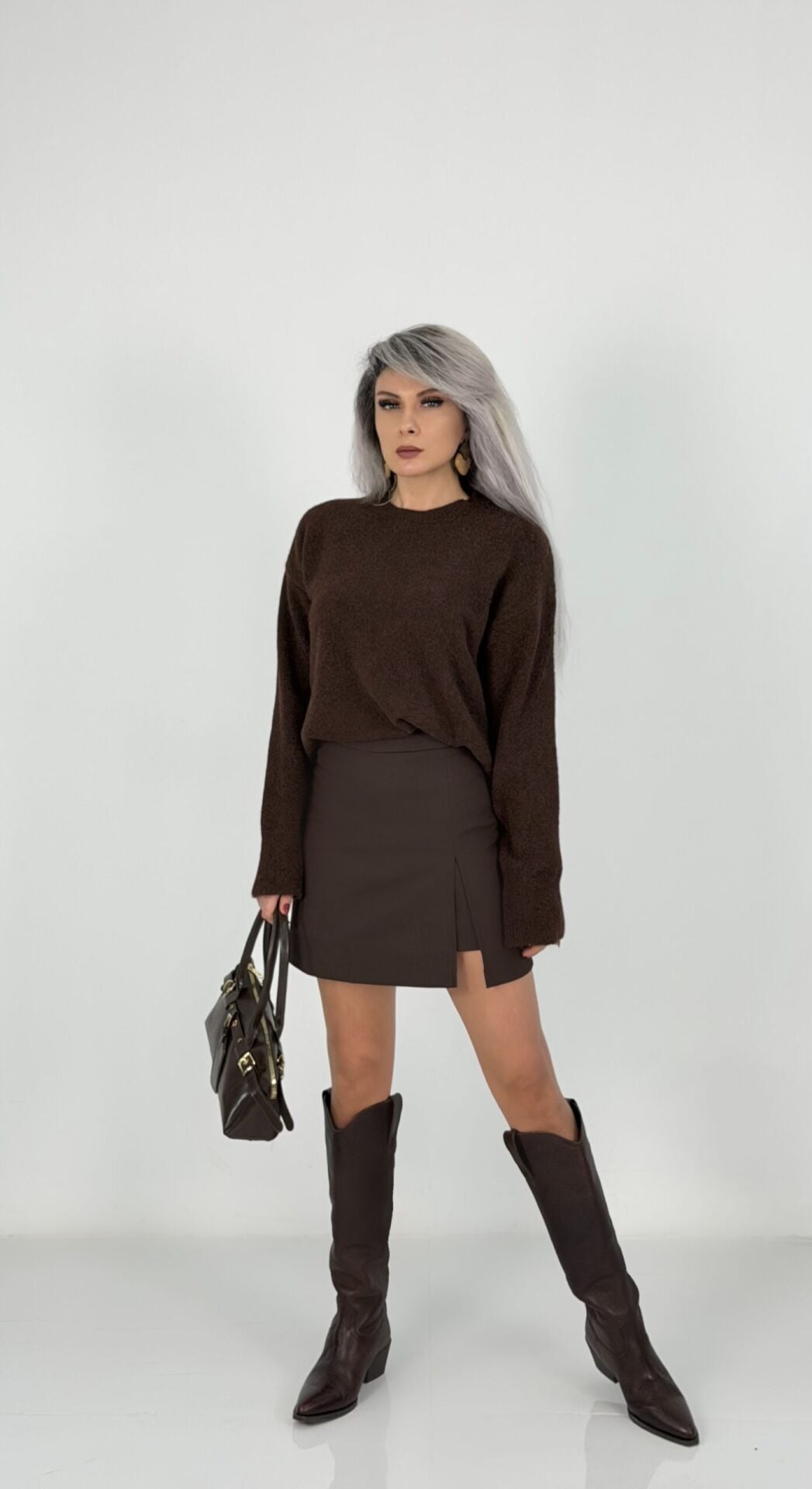 Kahve Yan Yırtmaç Etek Görünümlü Şort Etek