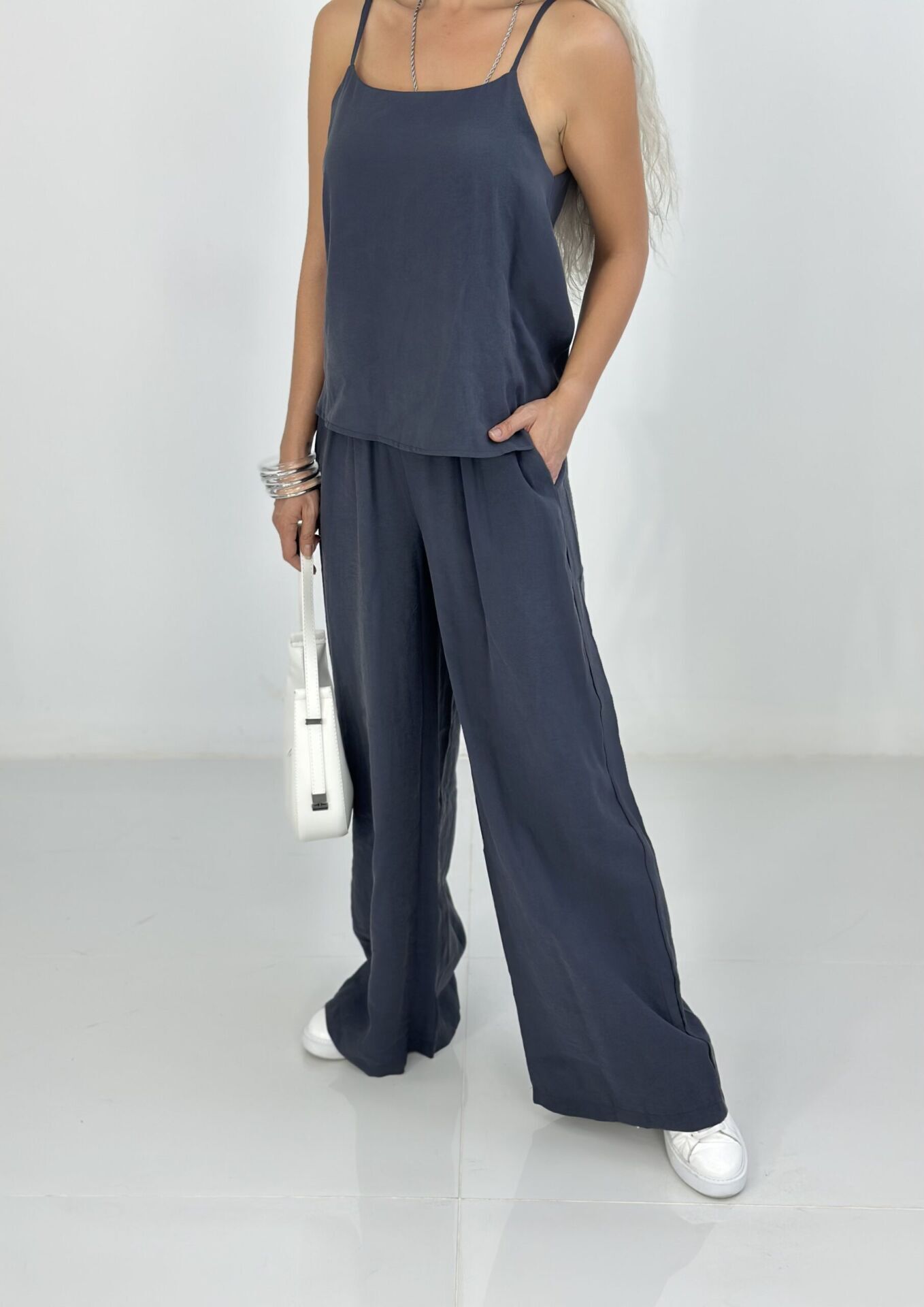 Koyu Gri Askılı Bluz Pantolon Takım MEDİUM