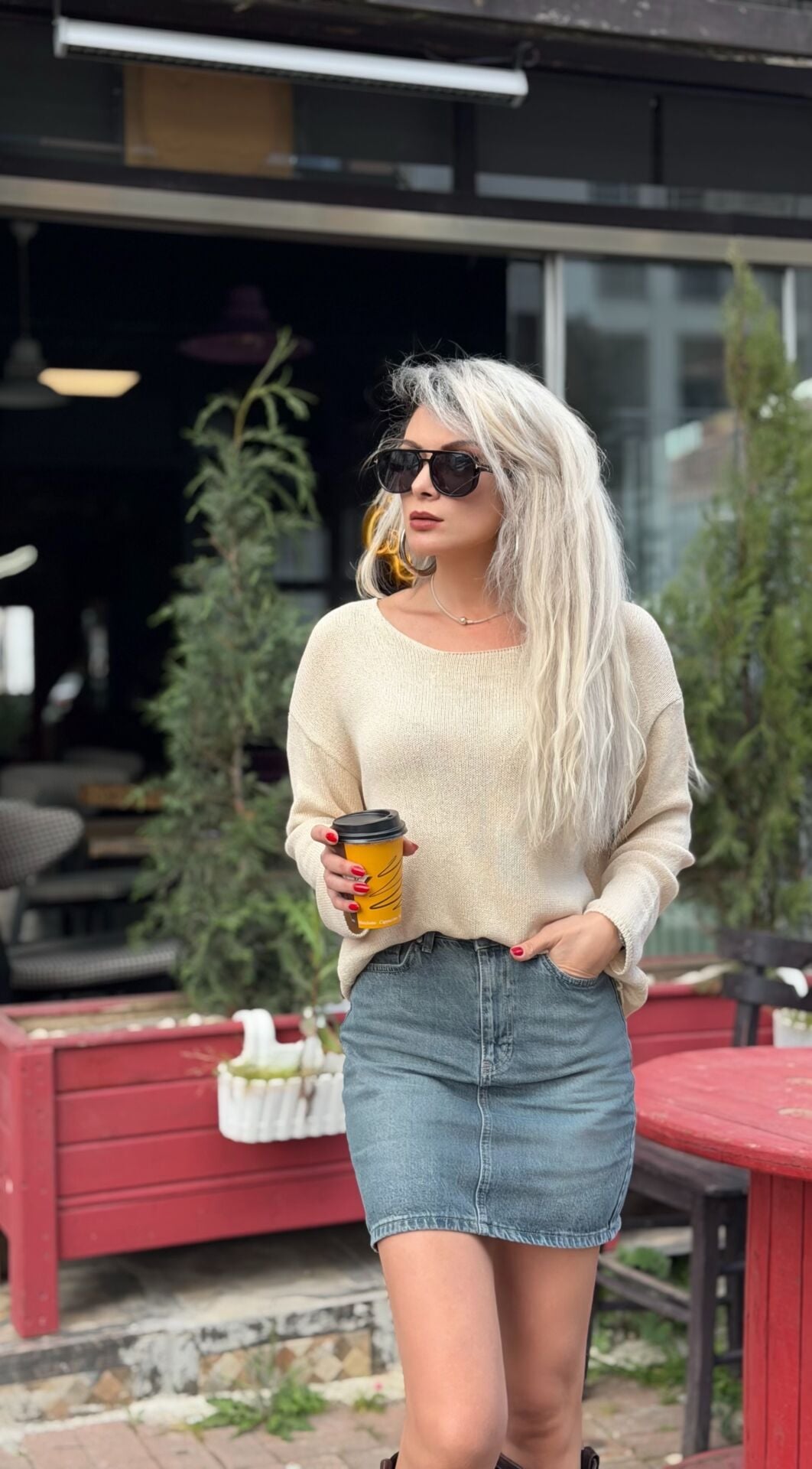 Koyu Yıkamalı Kemerli Mini Kot Etek
