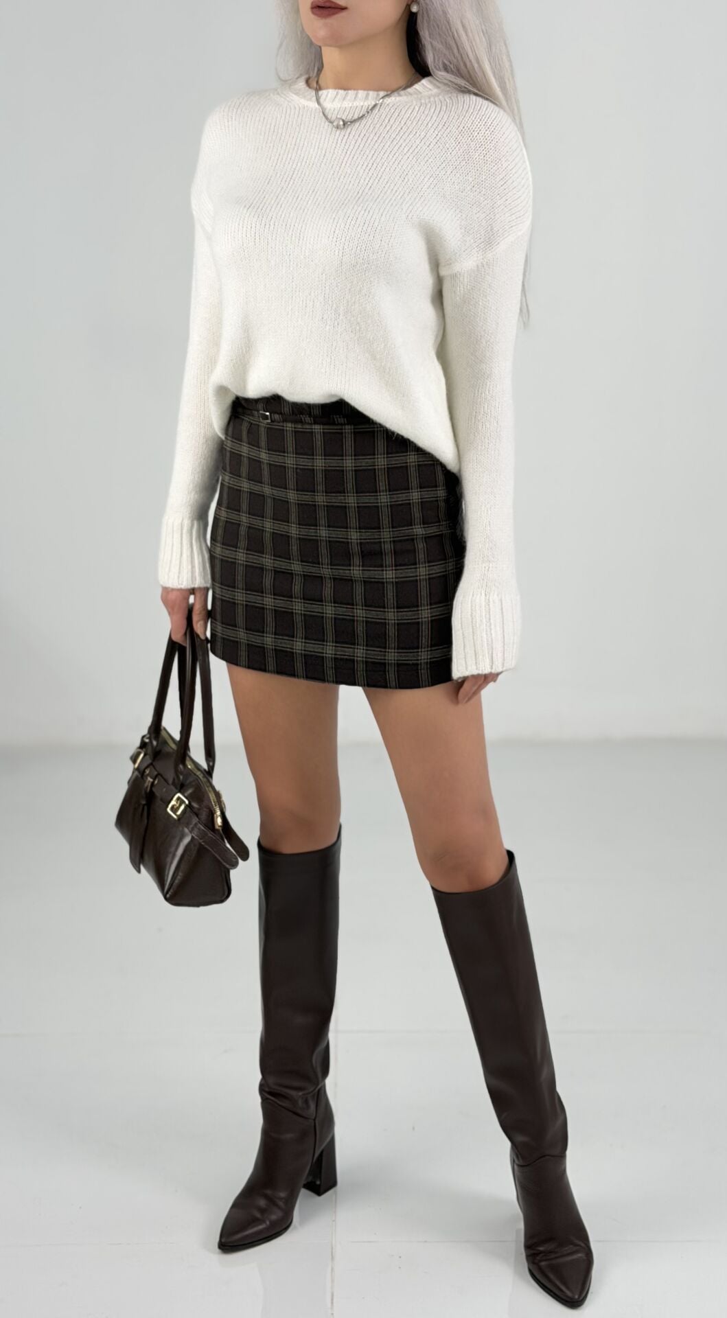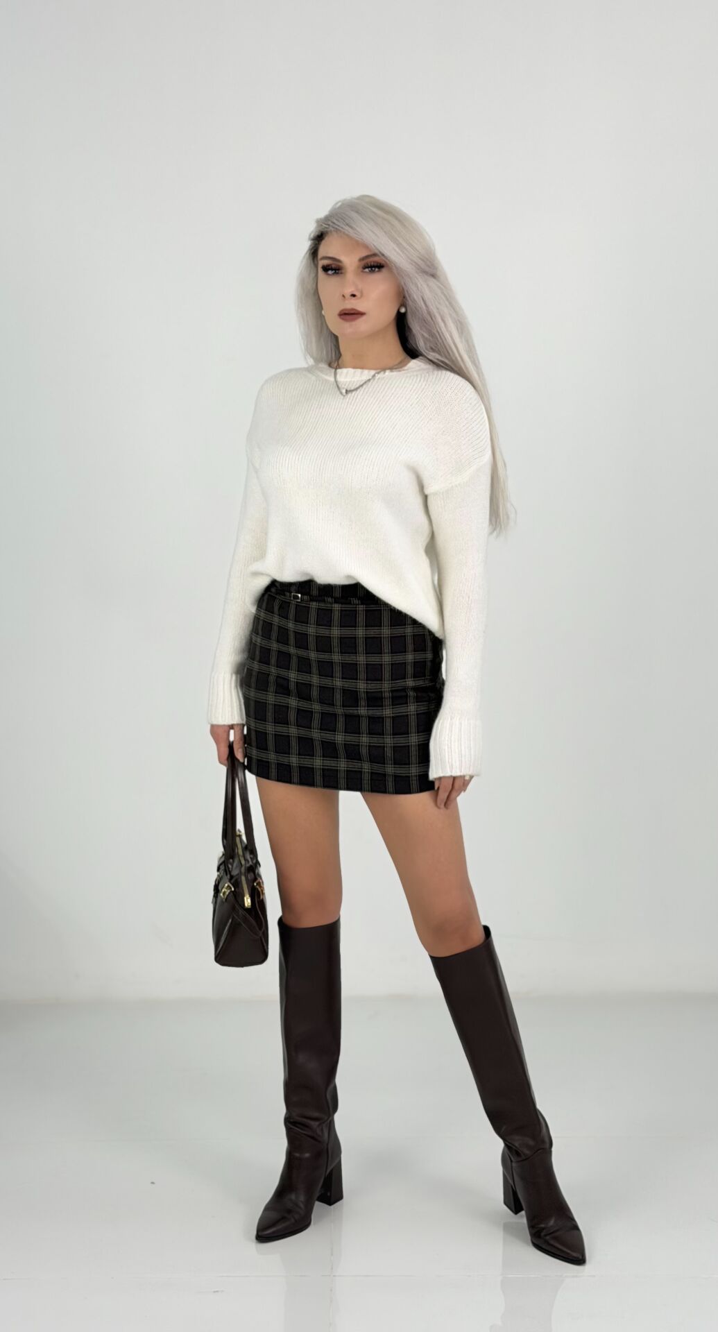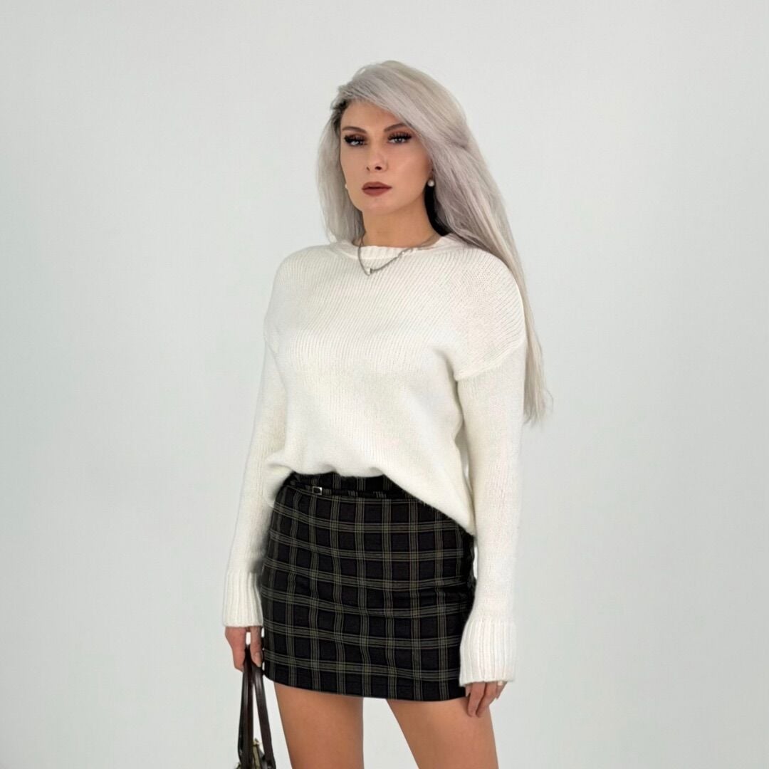 Krem Bisiklet Yaka Triko Kazak