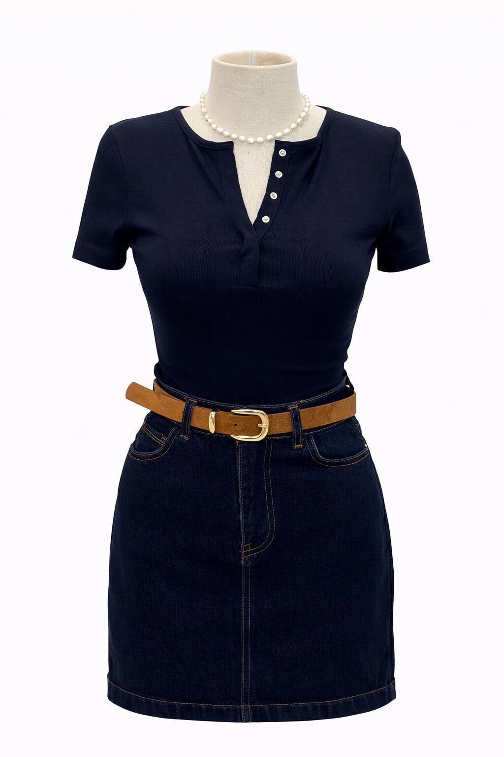 Lacivert Çıtçıt Kısa Kollu Tshirt