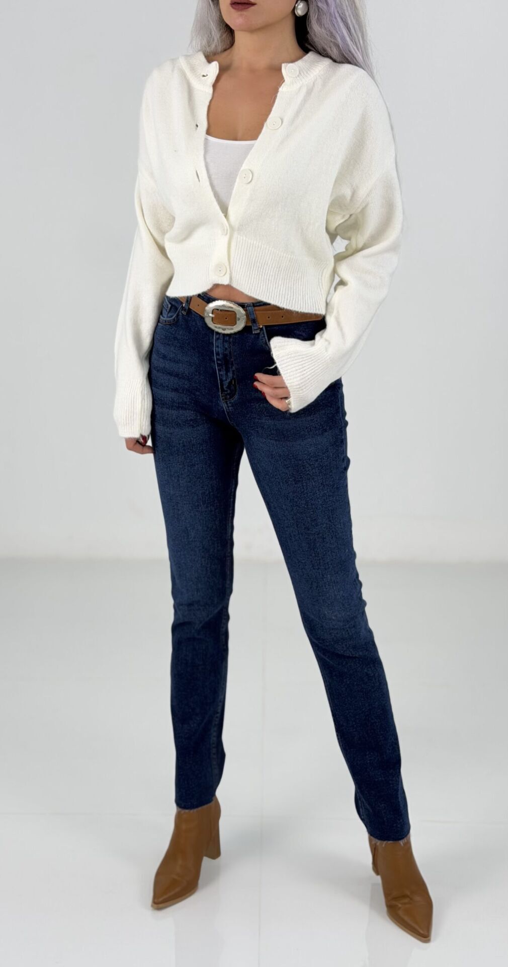 Lacivert Yüksek Bel Likralı Mom Fit Jean