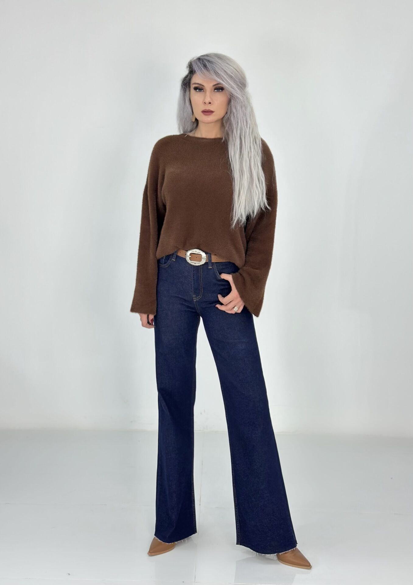 Lacivert Yüksek Bel Yarı Flare Jean 24