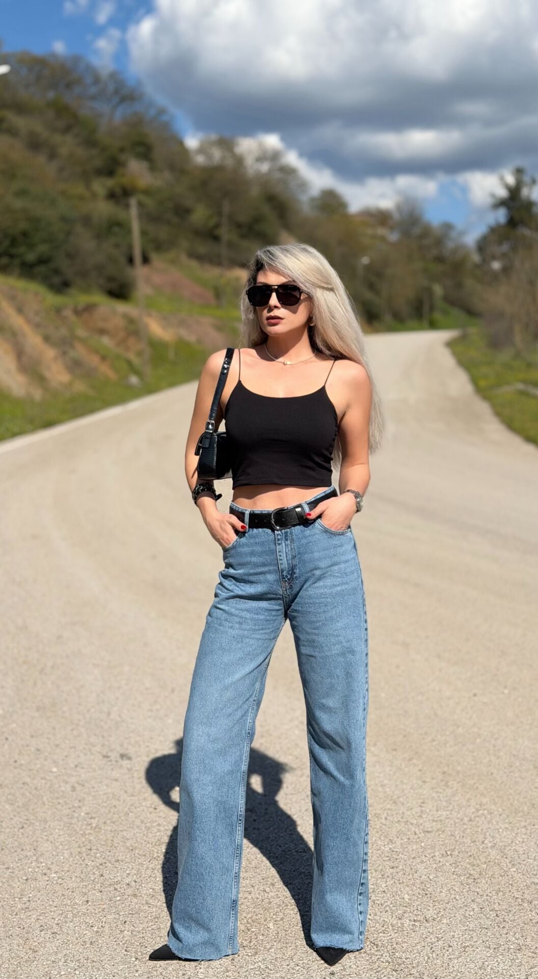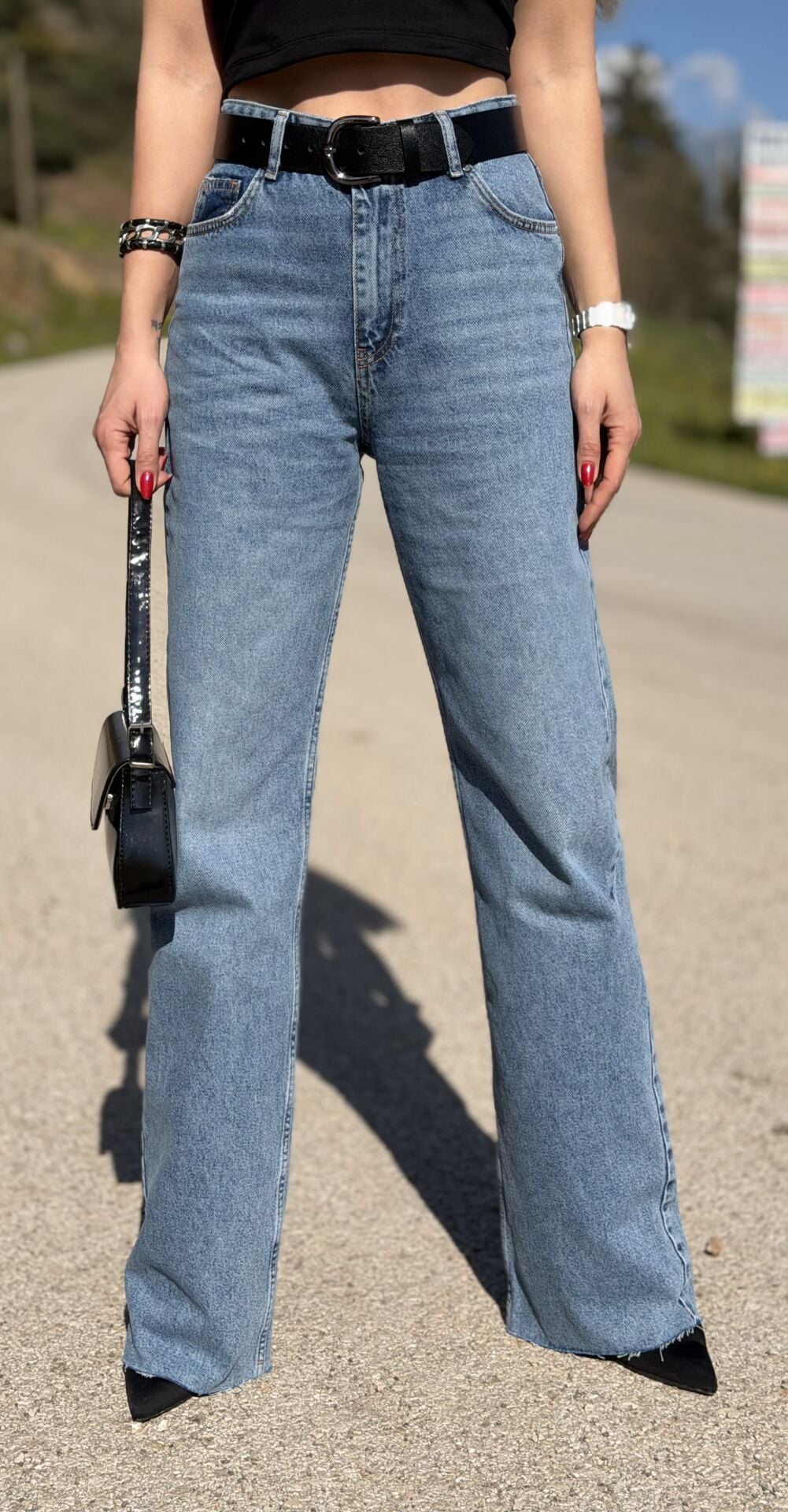 Mavi Yüksek Bel Likrasız Palazzo Jean Pantolon
