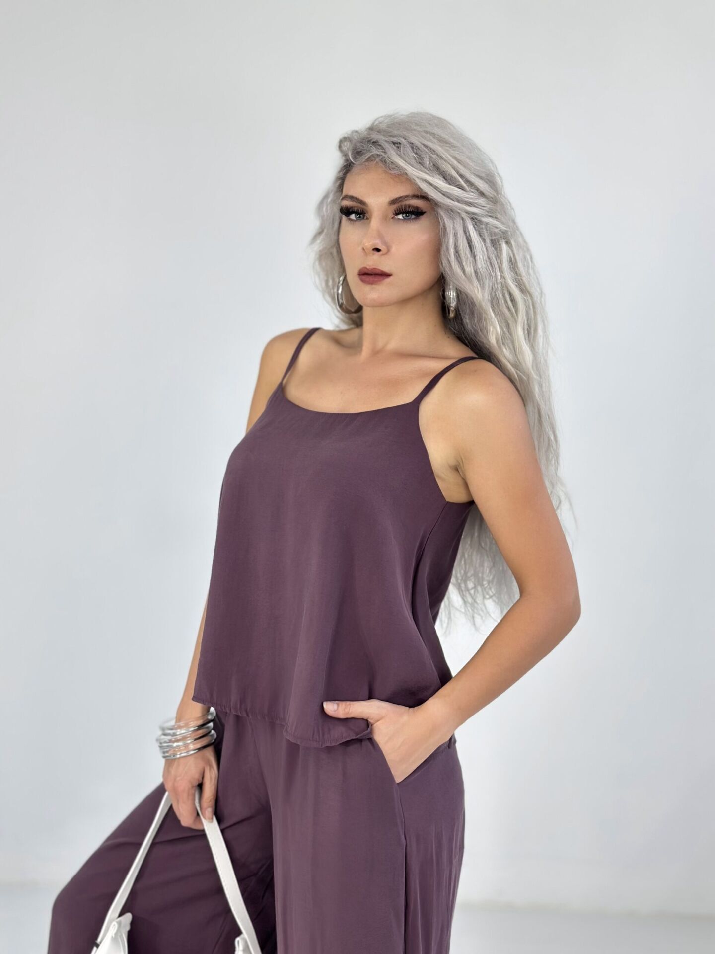 Mürdüm Askılı Bluz Pantolon Takım LARGE