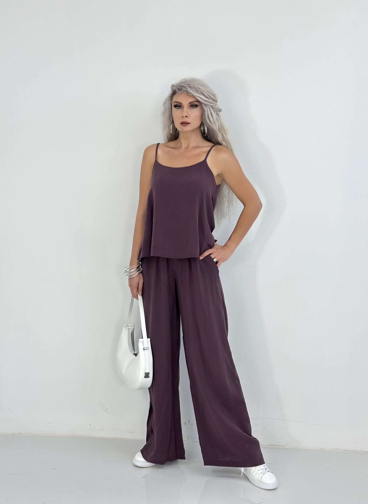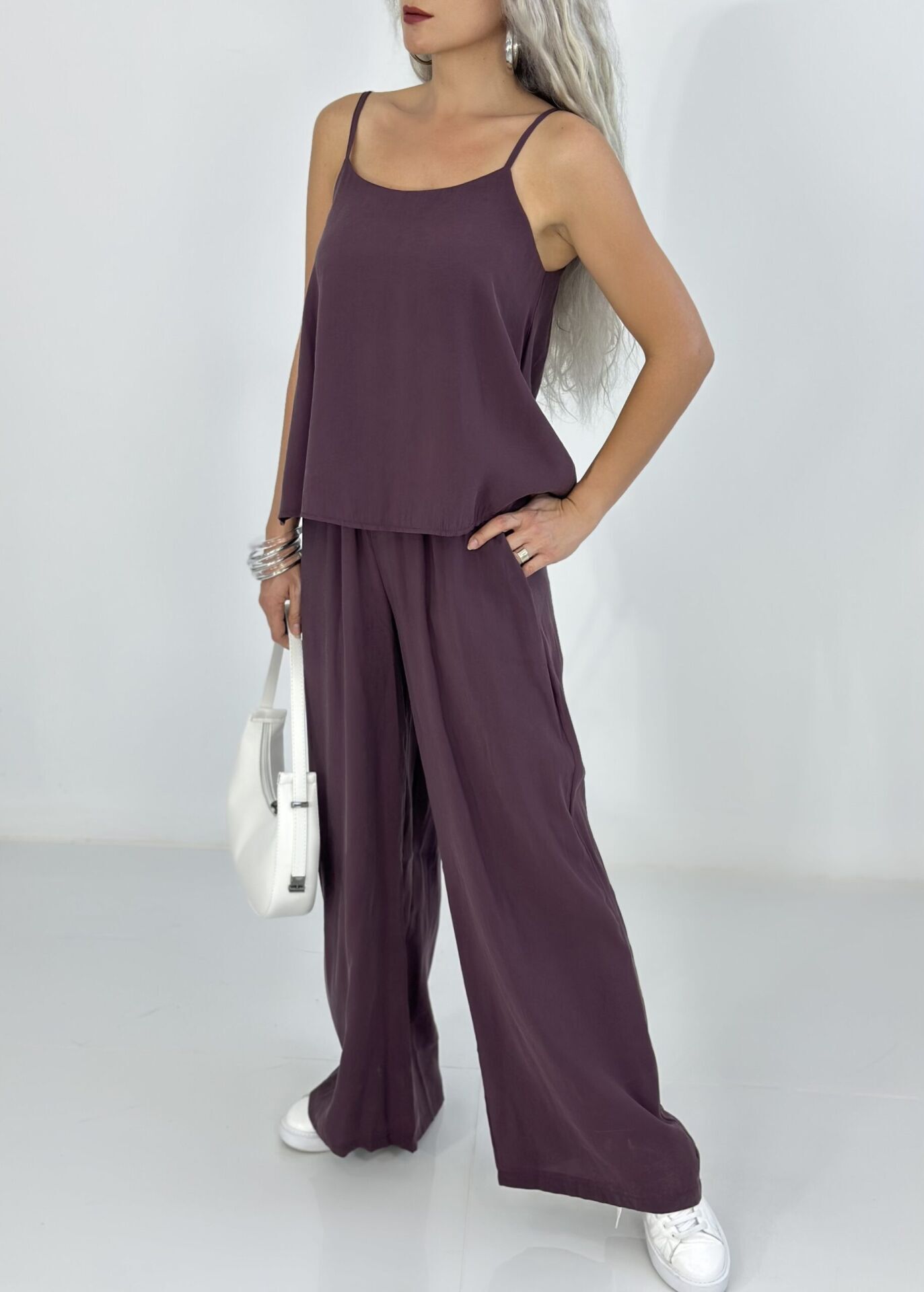 Mürdüm Askılı Bluz Pantolon Takım SMALL