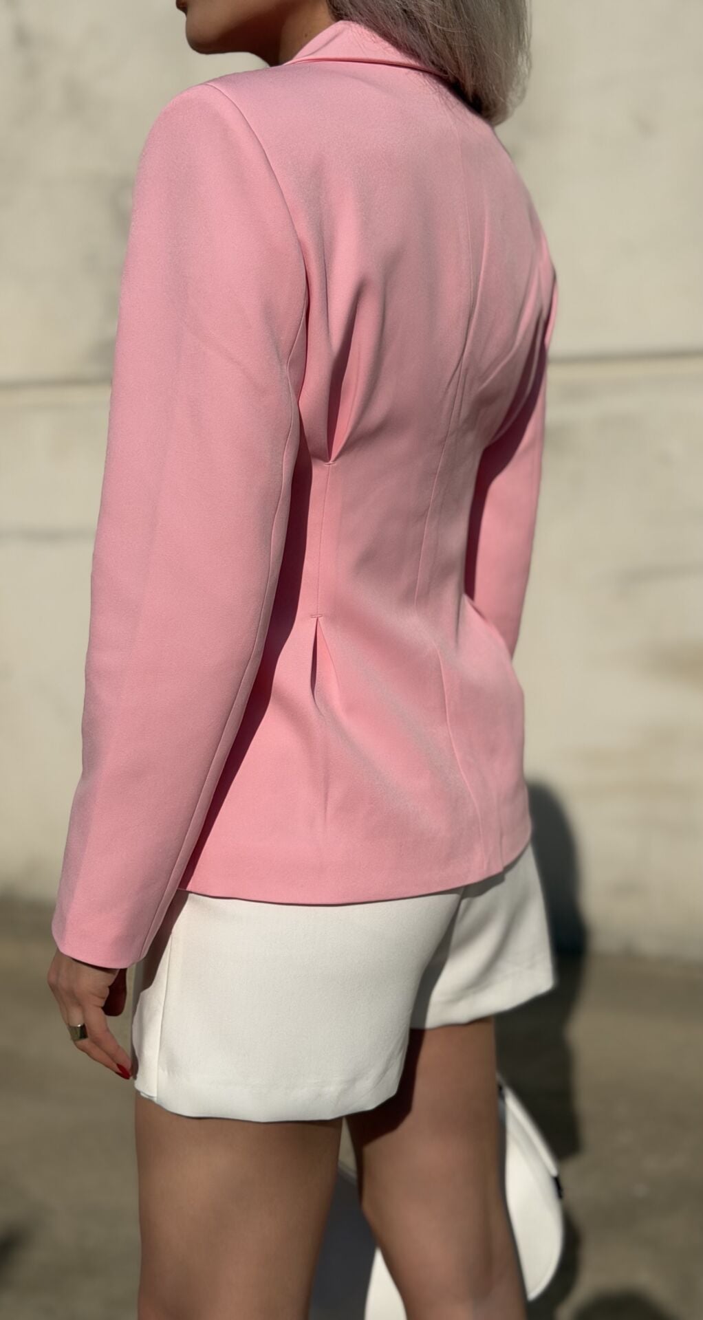 Pembe Belden Oturtmalı Blazer Ceket
