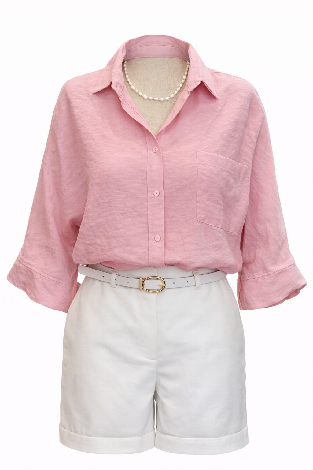 Pembe Pamuk Vizkon Yarım Kol Gömlek Bluz