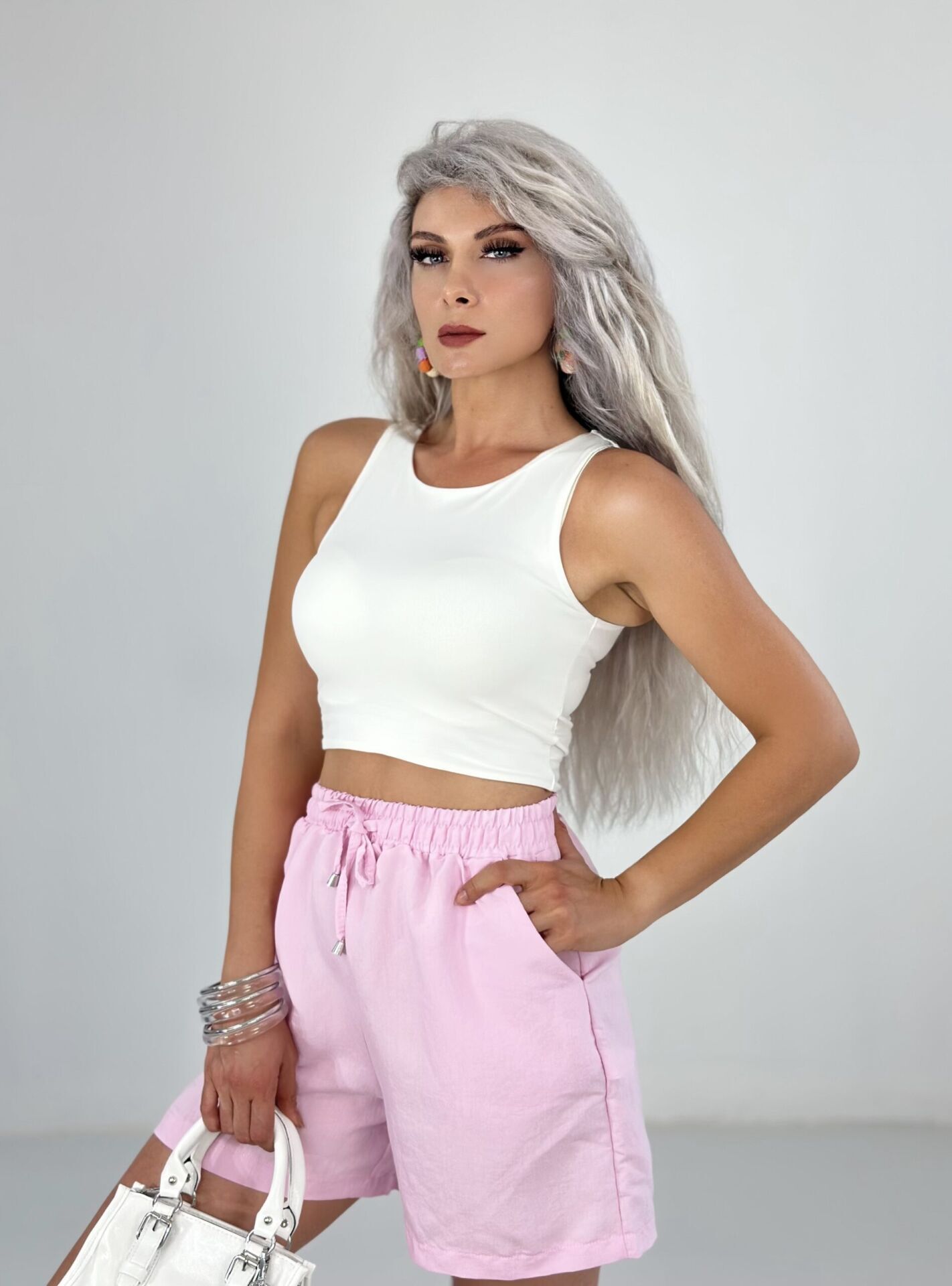 Pembe Tensel Kumaş Şort MEDİUM