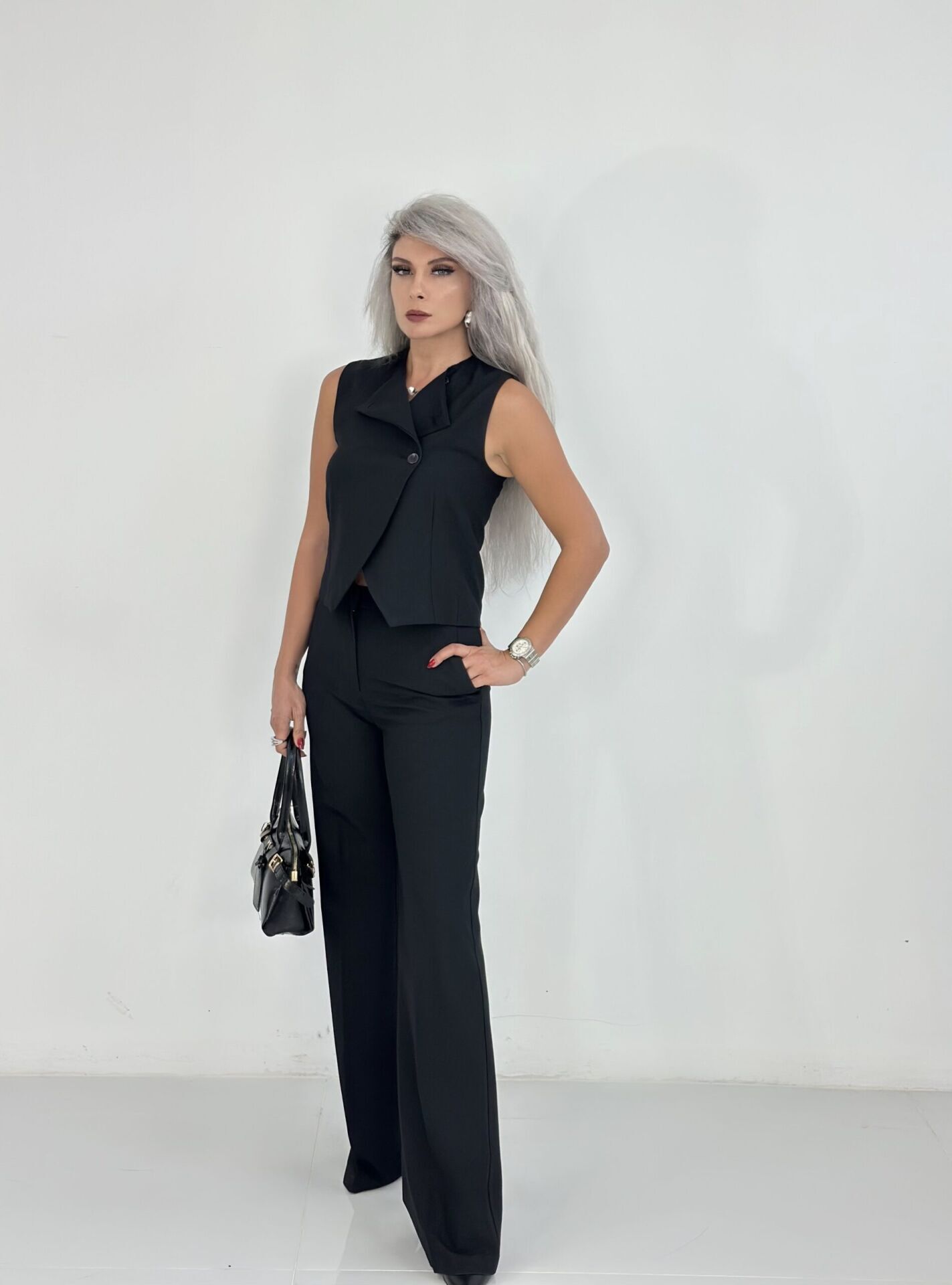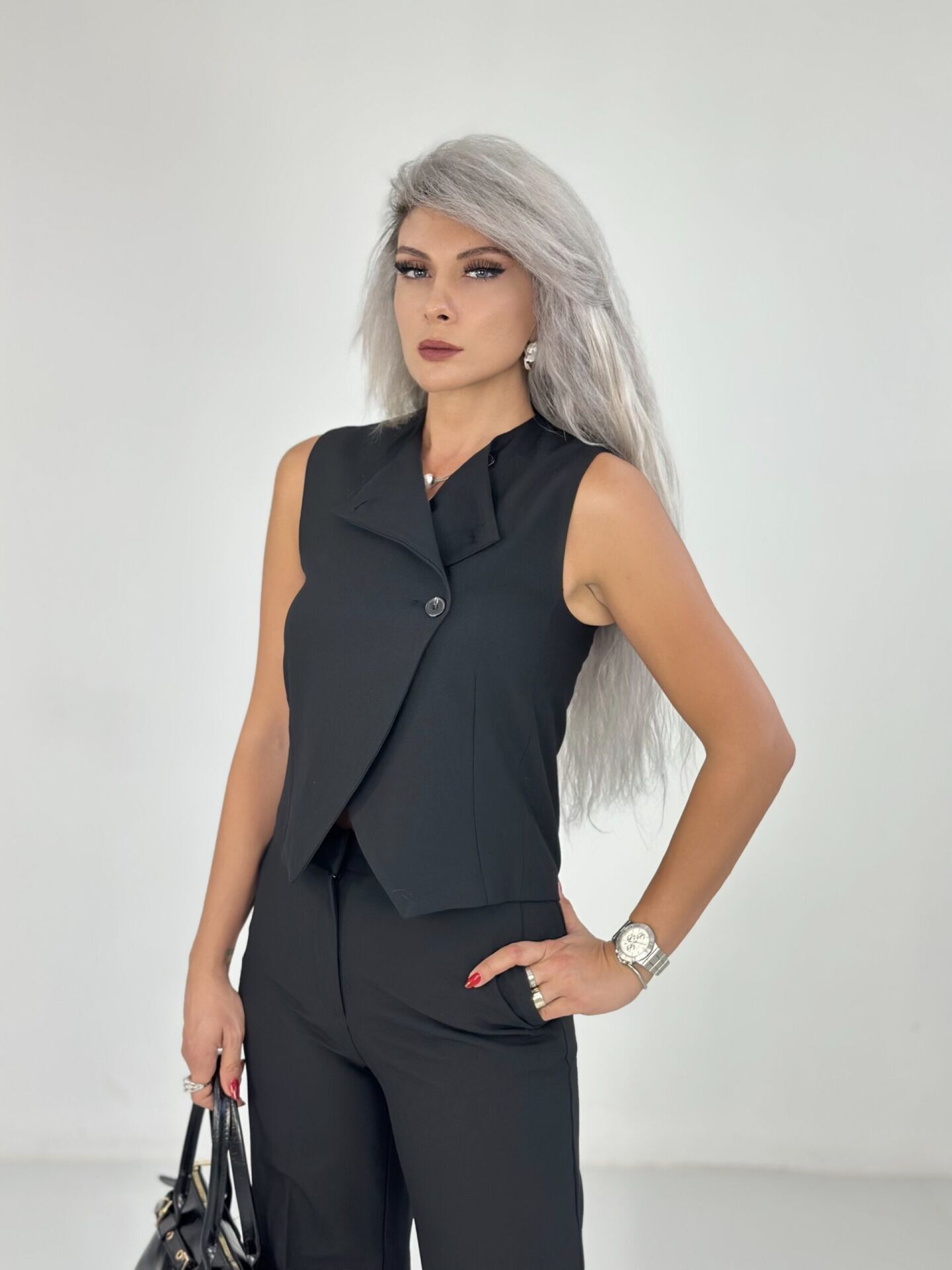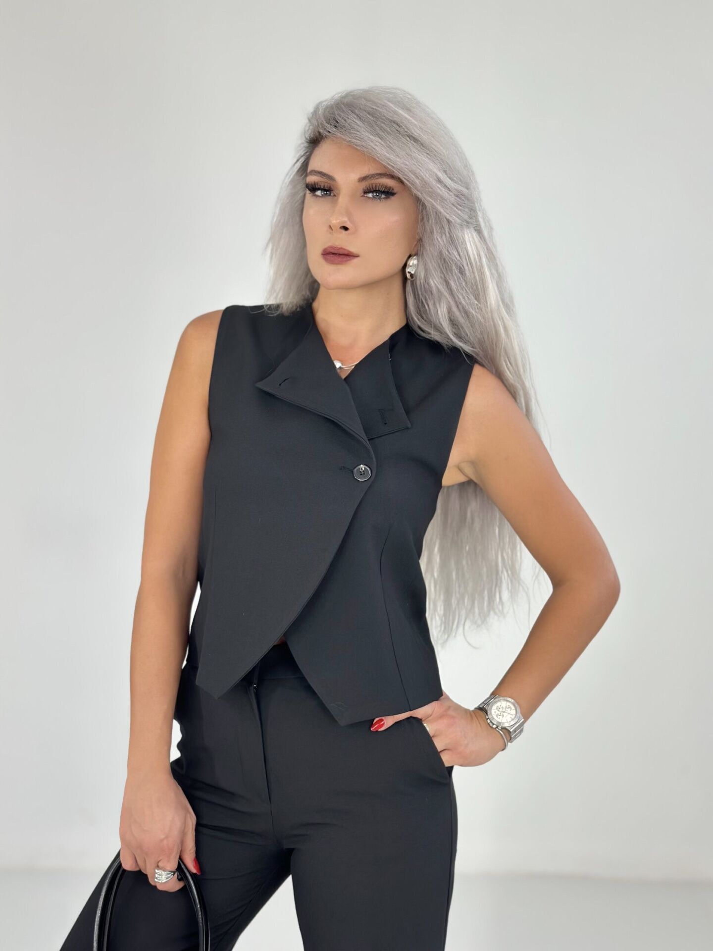 Siyah Çift Düğme Yelekli Takım