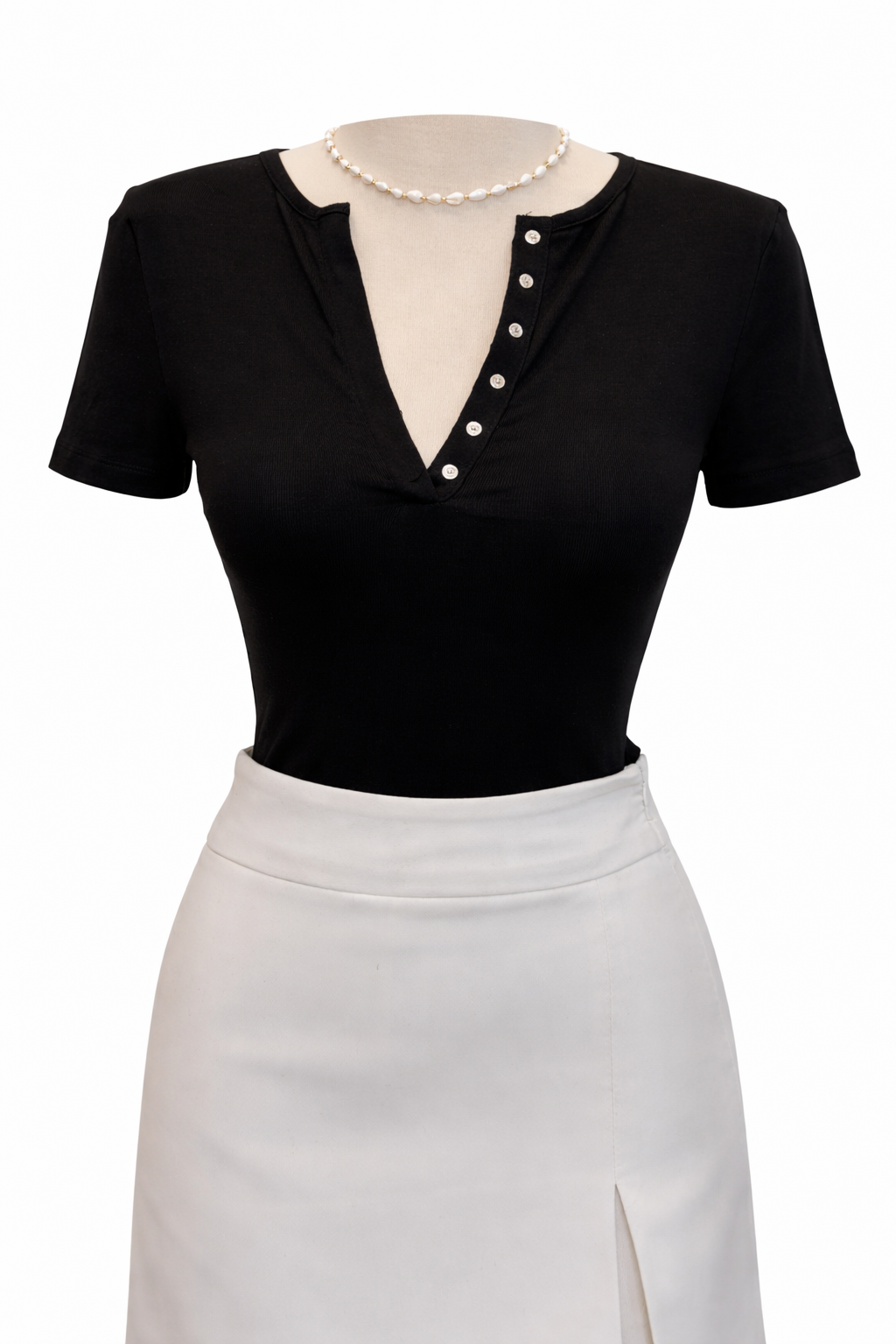 Siyah Çıtçıtlı Kısa Kollu Tshirt