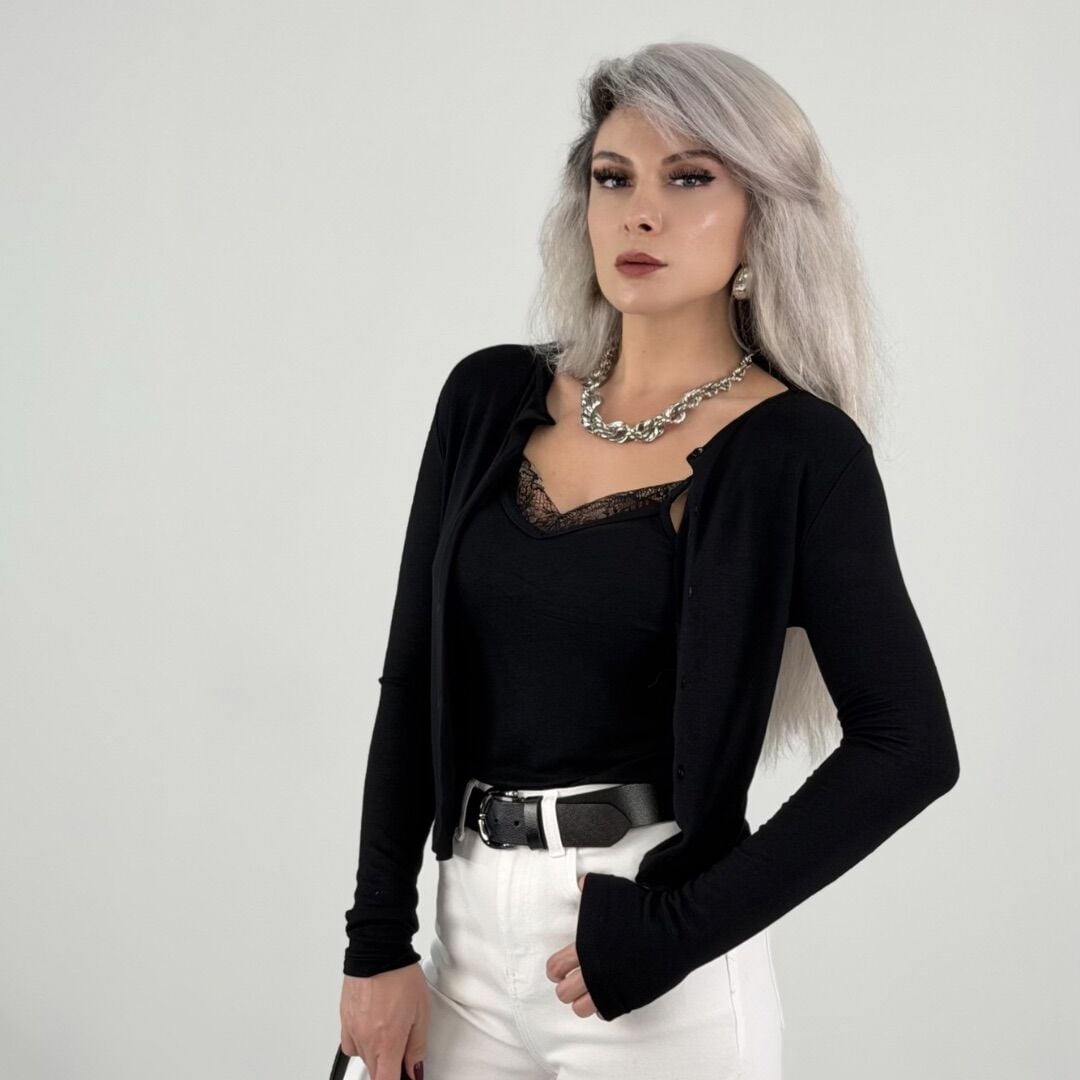 Siyah Dantel Detaylı Atlet Birleşik Hırka Bluz