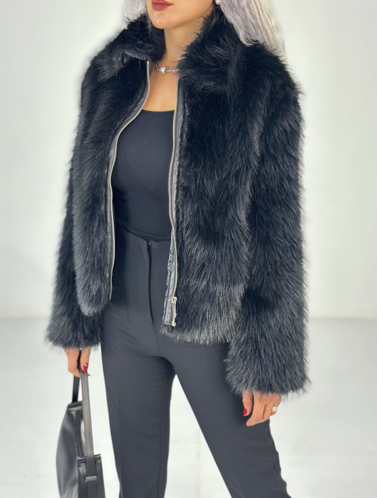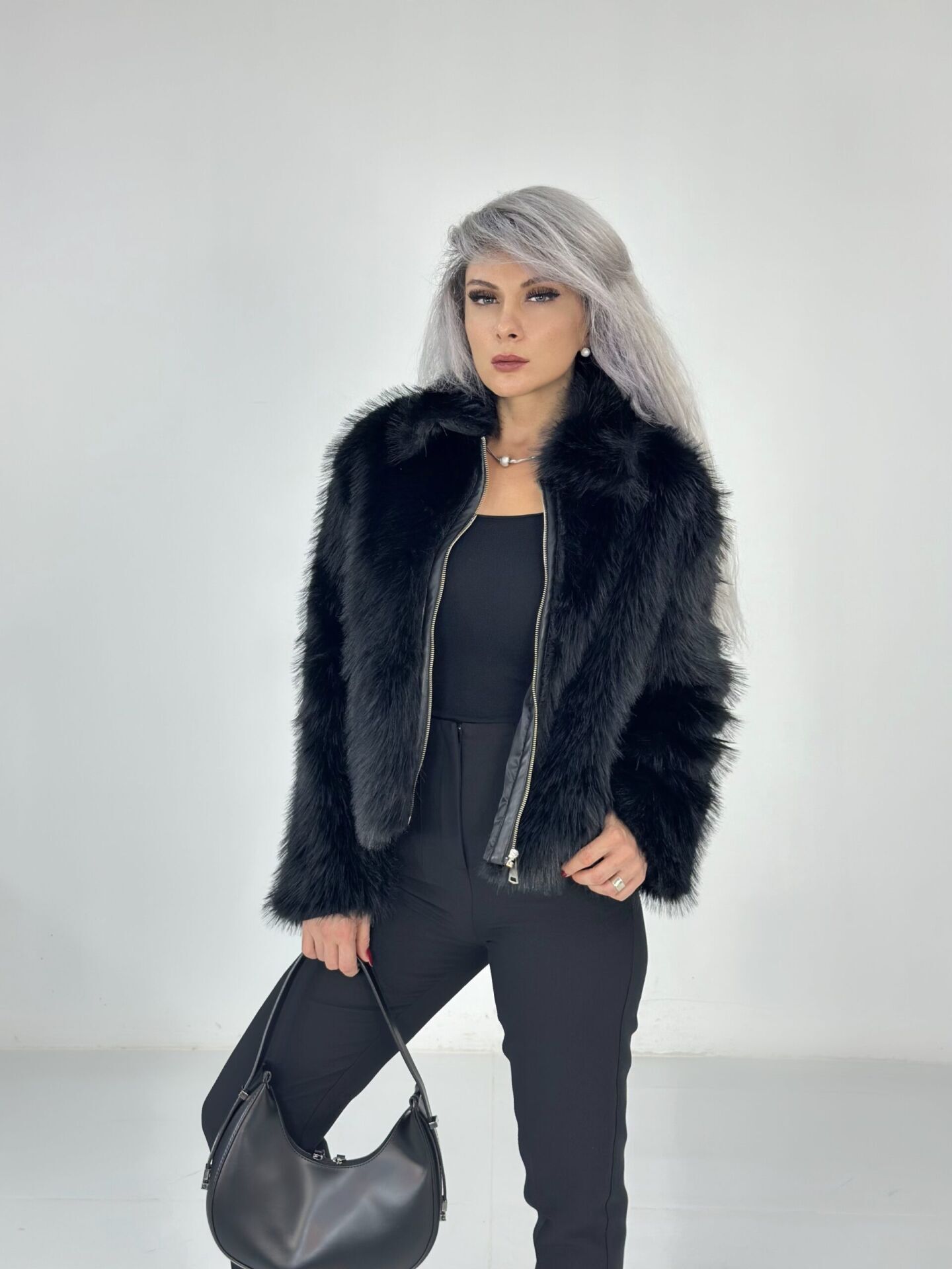 Siyah Fermuarlı Kısa Kürk Ceket SKU0236 Siyah Fermuarlı Kısa Kürk Ceket