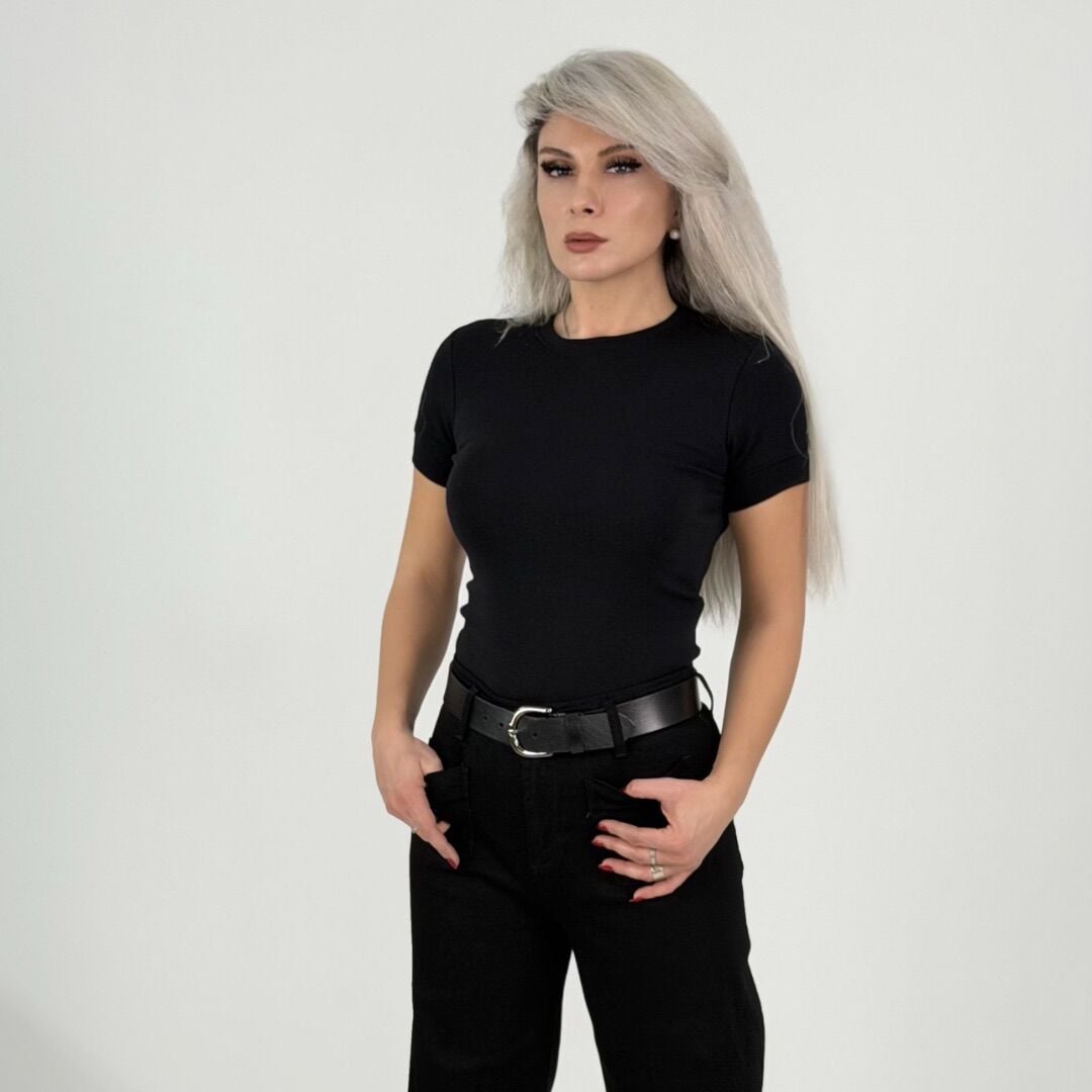 Siyah Fit Basic Likralı T-Shirt