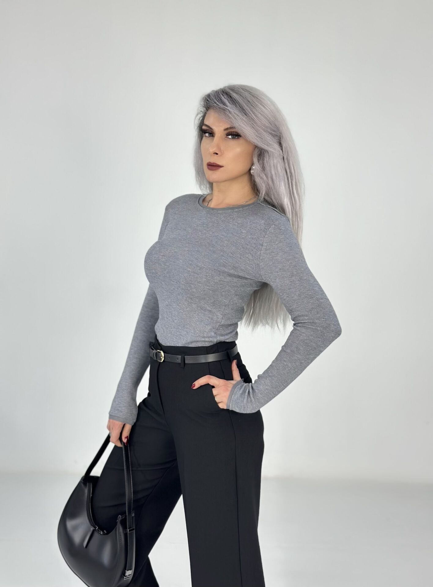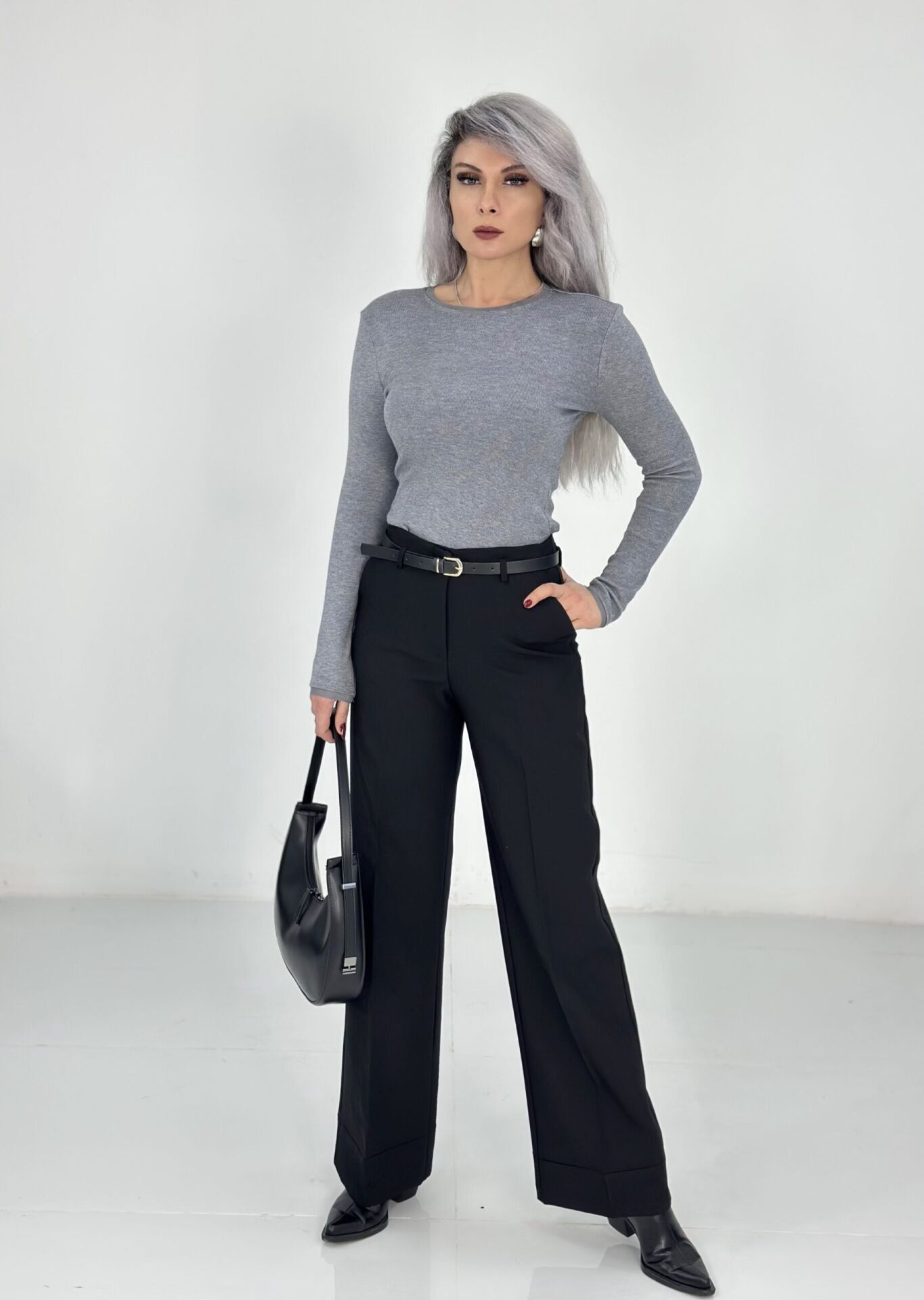 Siyah İnce Kemerli Duble Paça Bol Kumaş Pantolon
