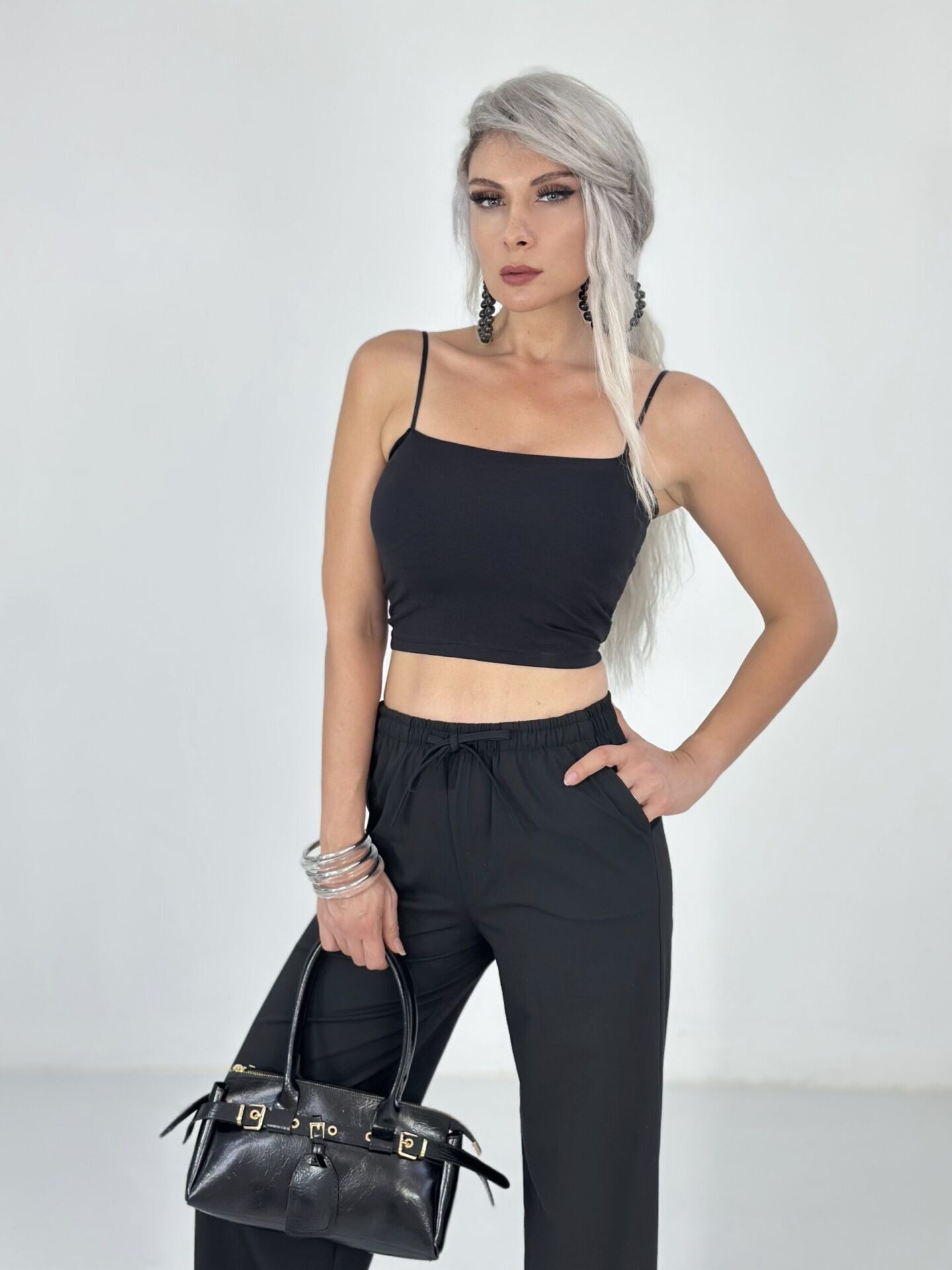 Siyah İp Askılı Göğüs Destekli Crop Atlet LARGE